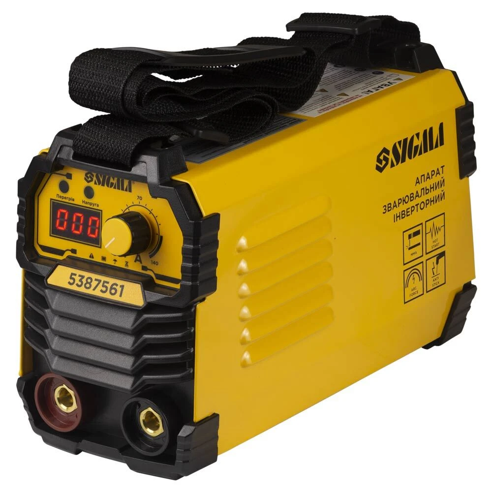Апарат зварювальний інверторний ММА-140А електрод 4мм дисплей SIGMA (5387561) призначений для зварювальних робіт методом ручного електродугового зварювання із застосуванням плавких електродів (ММА). Може застосовуватися для зварювання різних видів сталі.