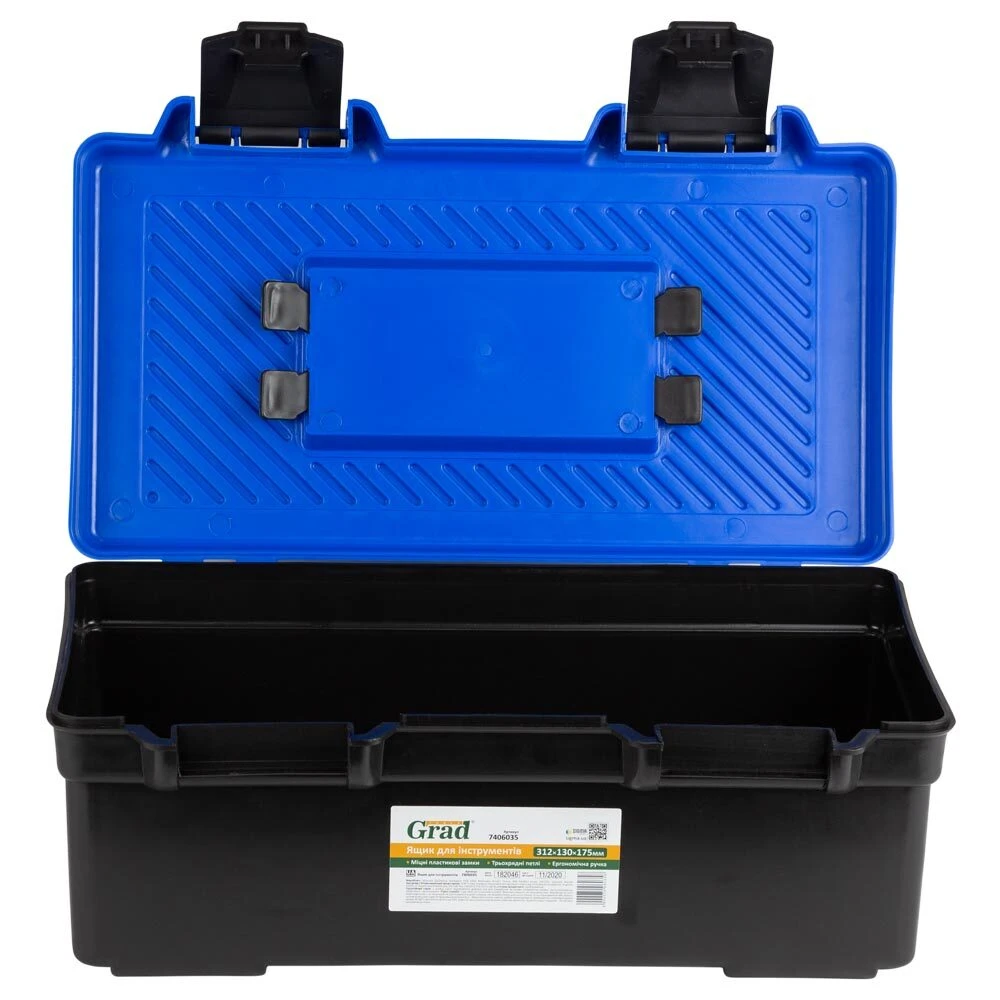 Ящик для інструменту 312×130×175мм GRAD (7406035) призначений для зберігання, транспортування, перенесення і зручного доступу до ручного інструменту.