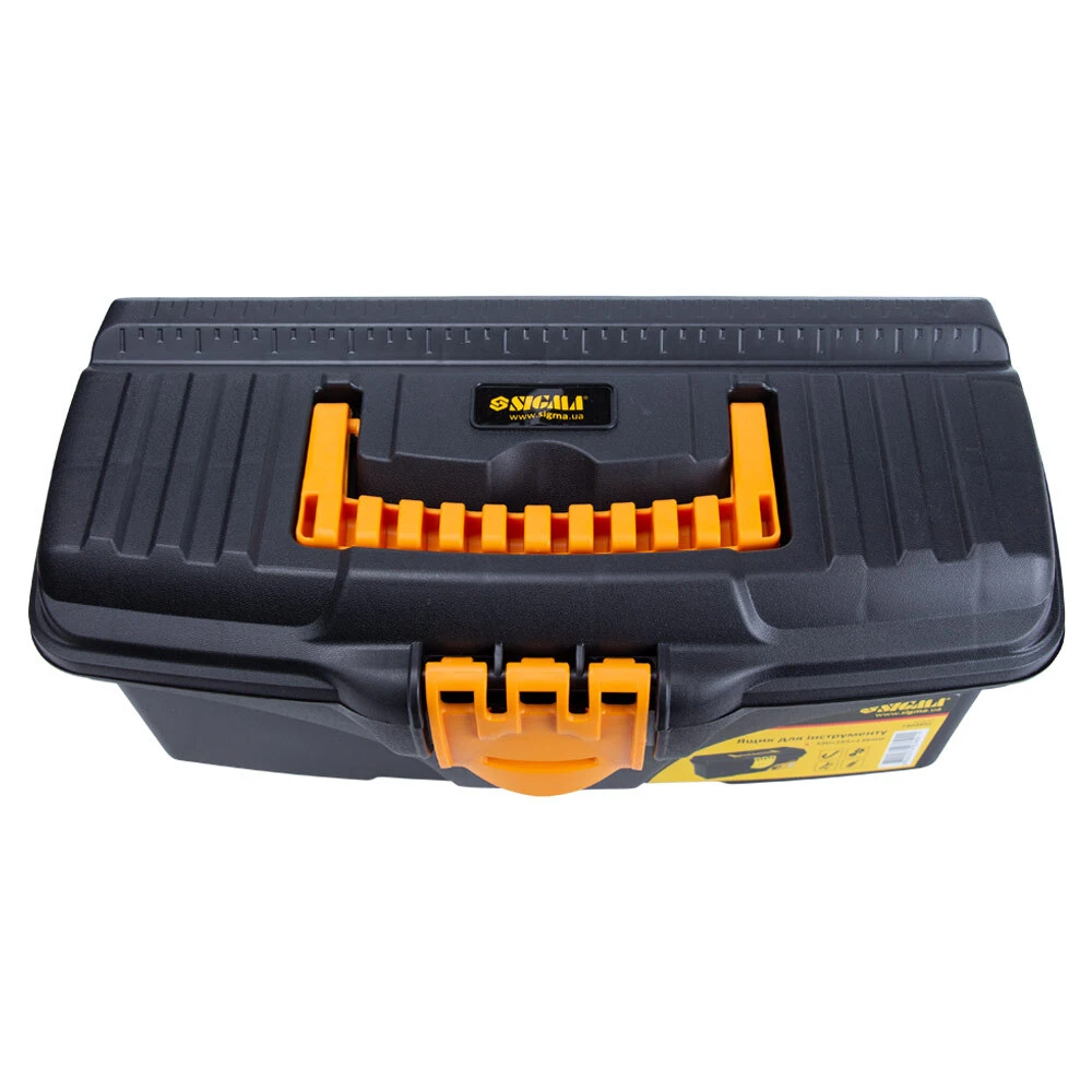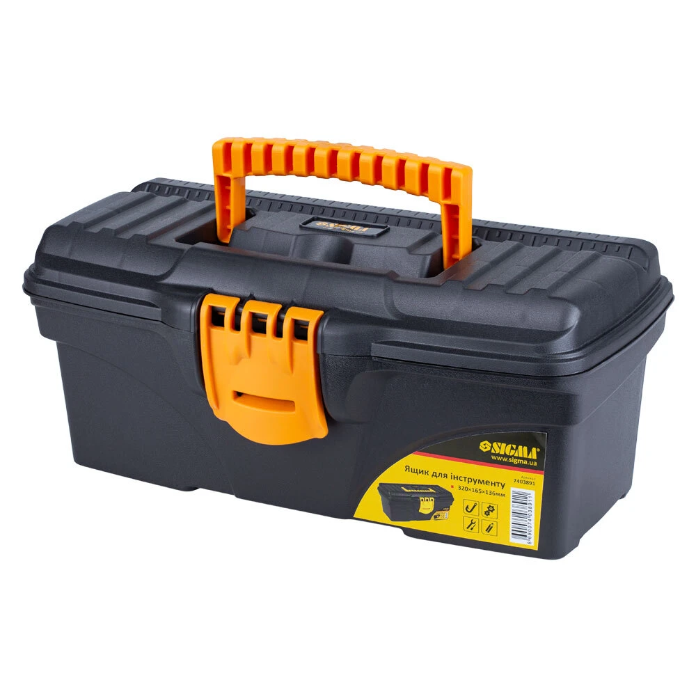 Ящик для інструменту 320×165×136мм SIGMA (7403891) призначений для зберігання, транспортування, перенесення і зручного доступу до ручного інструменту. Допомагає системно організувати зберігання дрібних деталей: кріплення, шайб, гайок та інших дрібниць. Простота в пошуку необхідних деталей забезпечується наявністю декількох секцій. Функціональний і знаходить застосування в багатьох сферах діяльності: перенесення індивідуальних інструментів, комплектація наборів інструментів і дрібних деталей для домашнього майстра, забезпечення працівників комунальних служб комплектом устаткування, при комплектації необхідного набору інструментів для автомобіля та ін.
