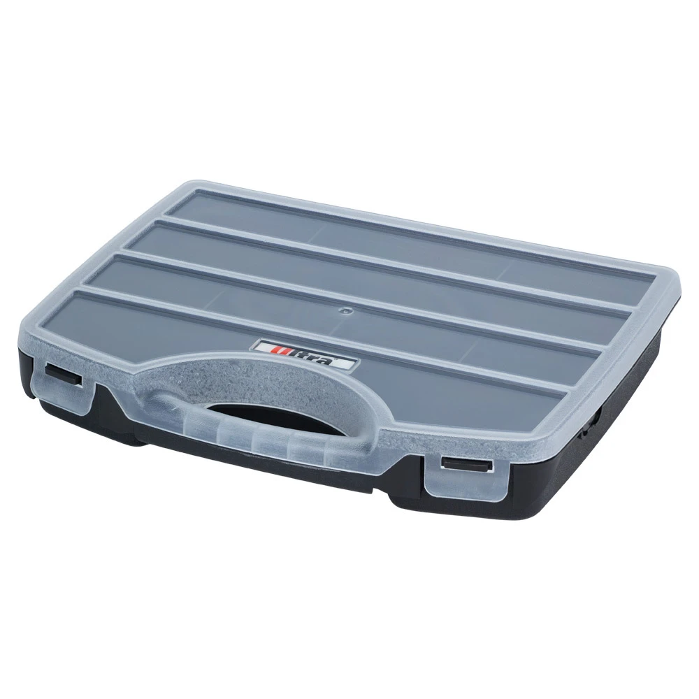 Ящик для інструменту зі знімними органайзерами Profi 600×305×283мм ULTRA (7402382) призначений для зберігання, транспортування, перенесення і зручного доступу до ручного інструменту. Допомагає системно організувати зберігання дрібних деталей: кріплення, шайб, гайок та інших дрібниць. Простота в пошуку необхідних деталей забезпечується наявністю декількох секцій. Функціональний і знаходить застосування в багатьох сферах діяльності: перенесення індивідуальних інструментів, комплектація наборів інструментів і дрібних деталей для домашнього майстра, забезпечення працівників комунальних служб комплектом устаткування, укладання дрібних предметів на відпочинку - риболовлі, полюванні, рукоділлі; при комплектації необхідного набору інструментів і аксесуарів для автомобіля, майстерні, гаража або СТО, а також зберігання найрізноманітніших предметів в побуті.