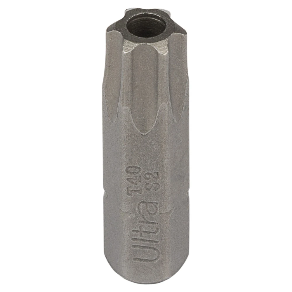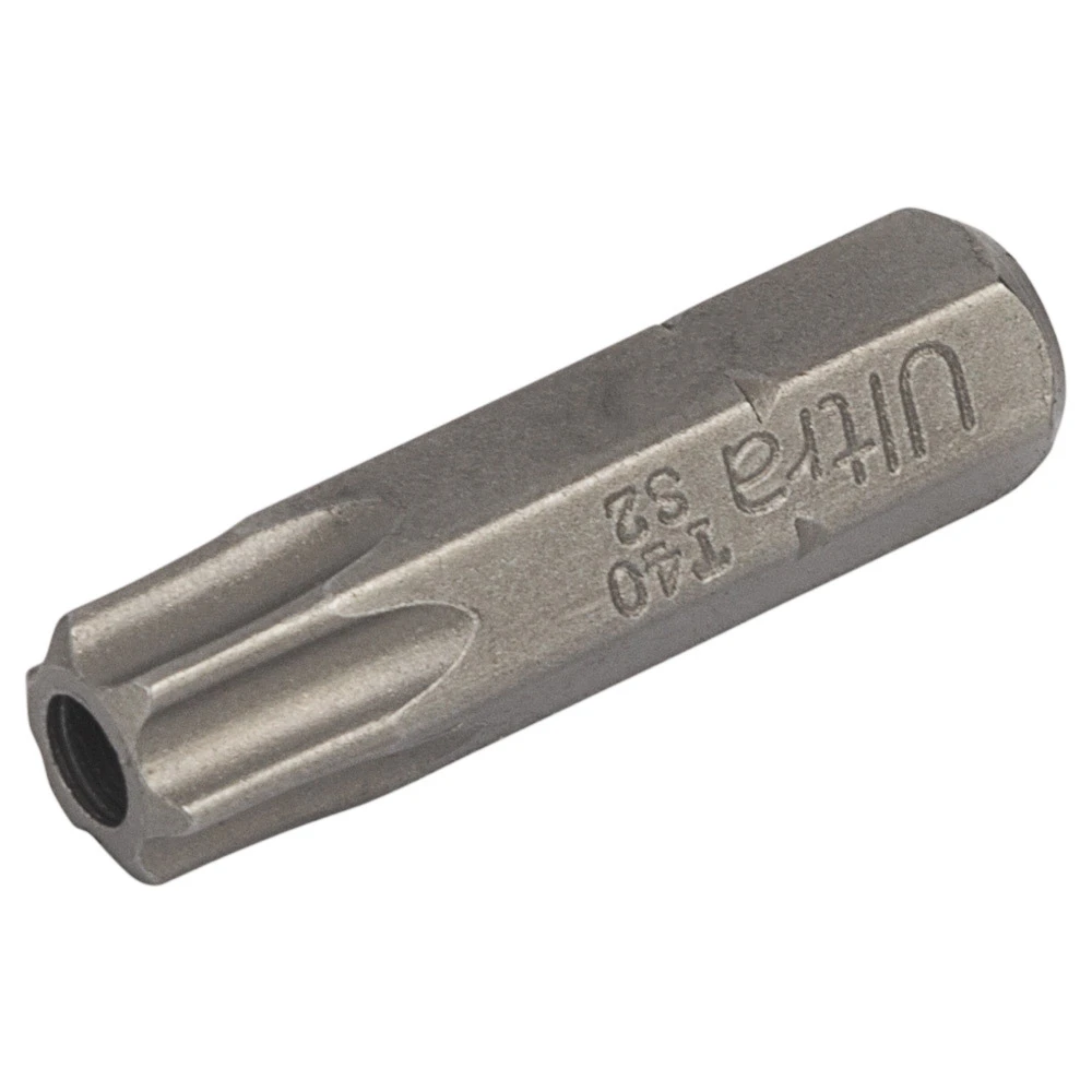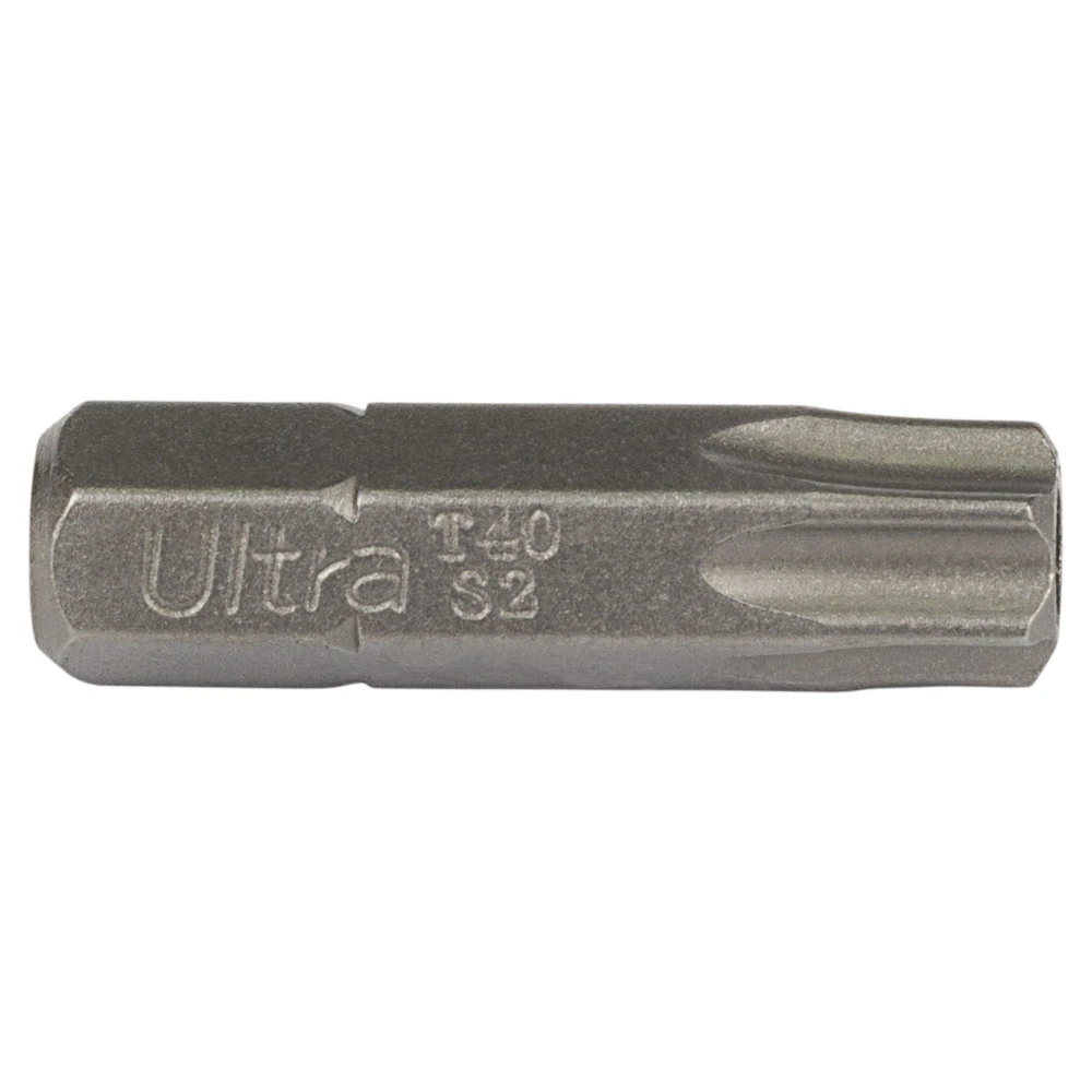 Викруткові біти ТМ ULTRA призначені для професійного використання. Виготовлені з легованої інструментальної сталі S2 з поверхневим зміцненням до твердості 58-61 HRC струмами високої частоти (СВЧ). Мають проточенну головну частину для роботи у вузьких місцях. Точна форма робочої частини забезпечує ідеальну фіксацію в шліцах гвинтів, шурупів, саморізів і т.д. Бічна поверхня відполірована.
