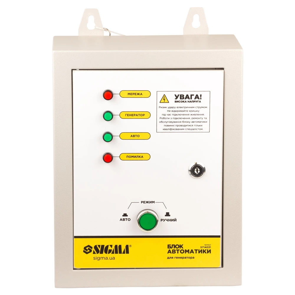 Блок автоматики 220В для інверторних генераторів до 10кВт SIGMA (5714031) застосовується для спільної роботи з генераторами, які мають опцію автоматичної роботи і винесений на передню панель роз’єм для підключення блоку автоматики.