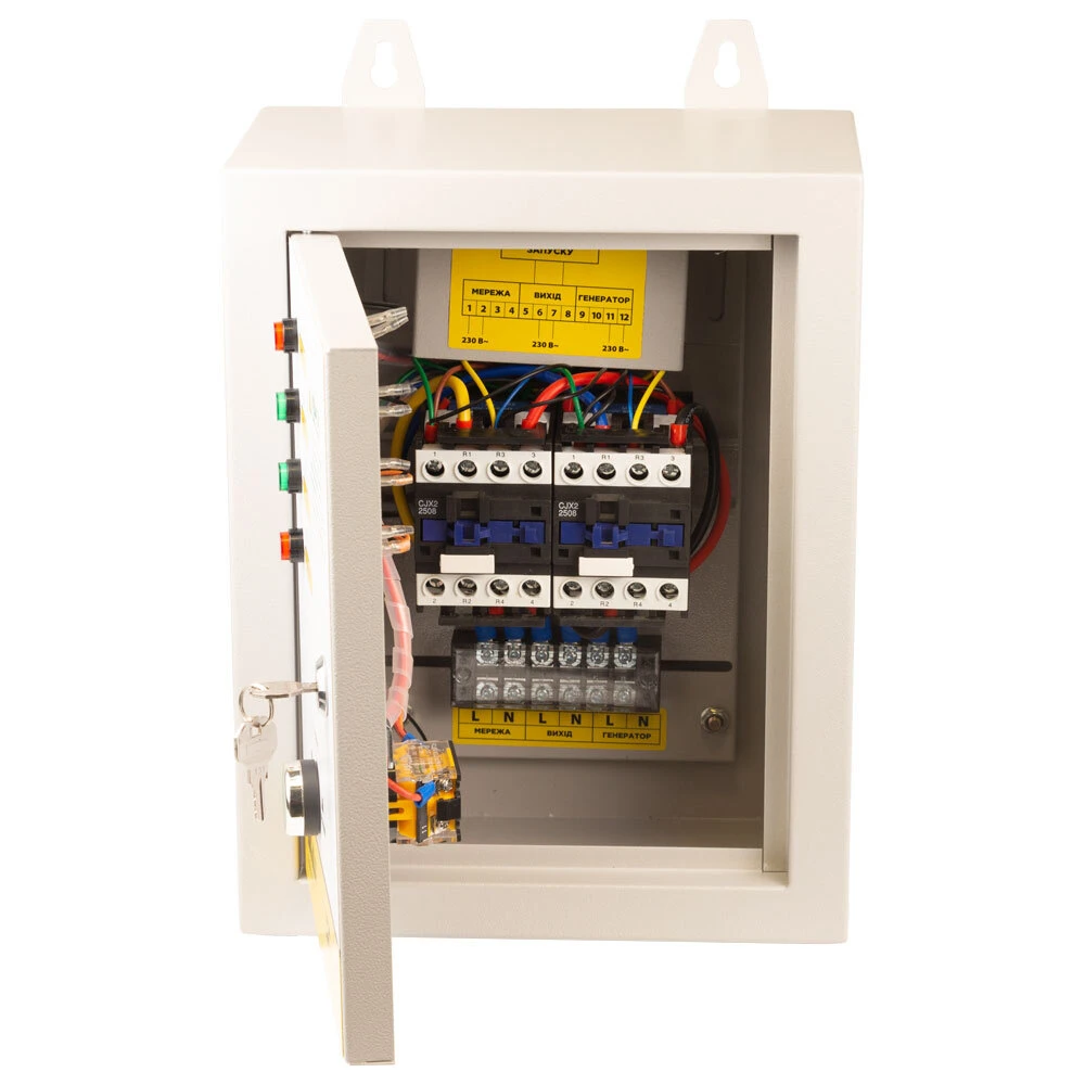 Блок забезпечує автоматичний запуск генератора у разі збою або припинення подачі електроенергії у спільній мережі, перемикання навантаження на живлення від генератора, а також зворотне перемикання навантаження на загальну мережу при відновленні та зупинці генератора.