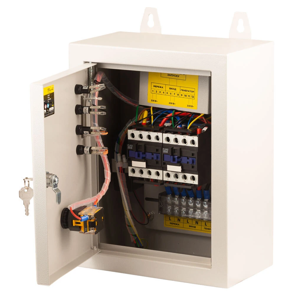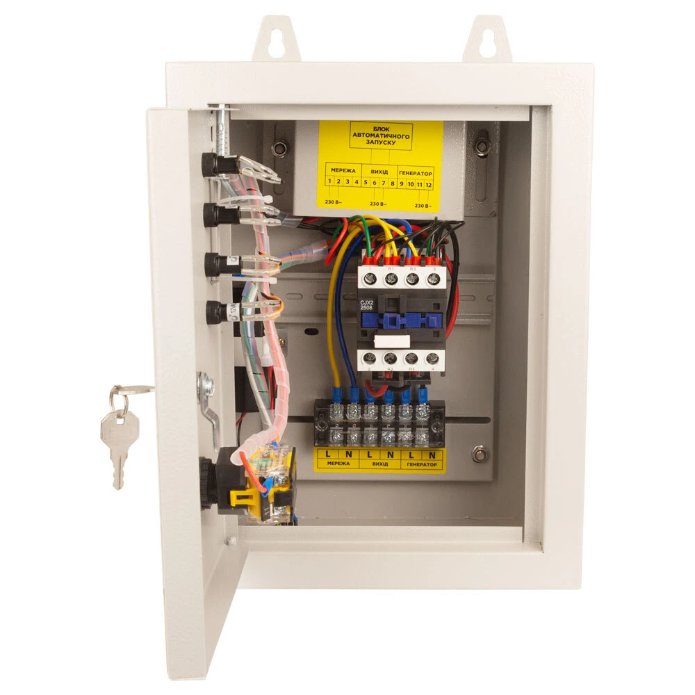 Блок забезпечує автоматичний запуск генератора у разі збою або припинення подачі електроенергії у спільній мережі, перемикання навантаження на живлення від генератора, а також зворотне перемикання навантаження на загальну мережу при відновленні та зупинці генератора.