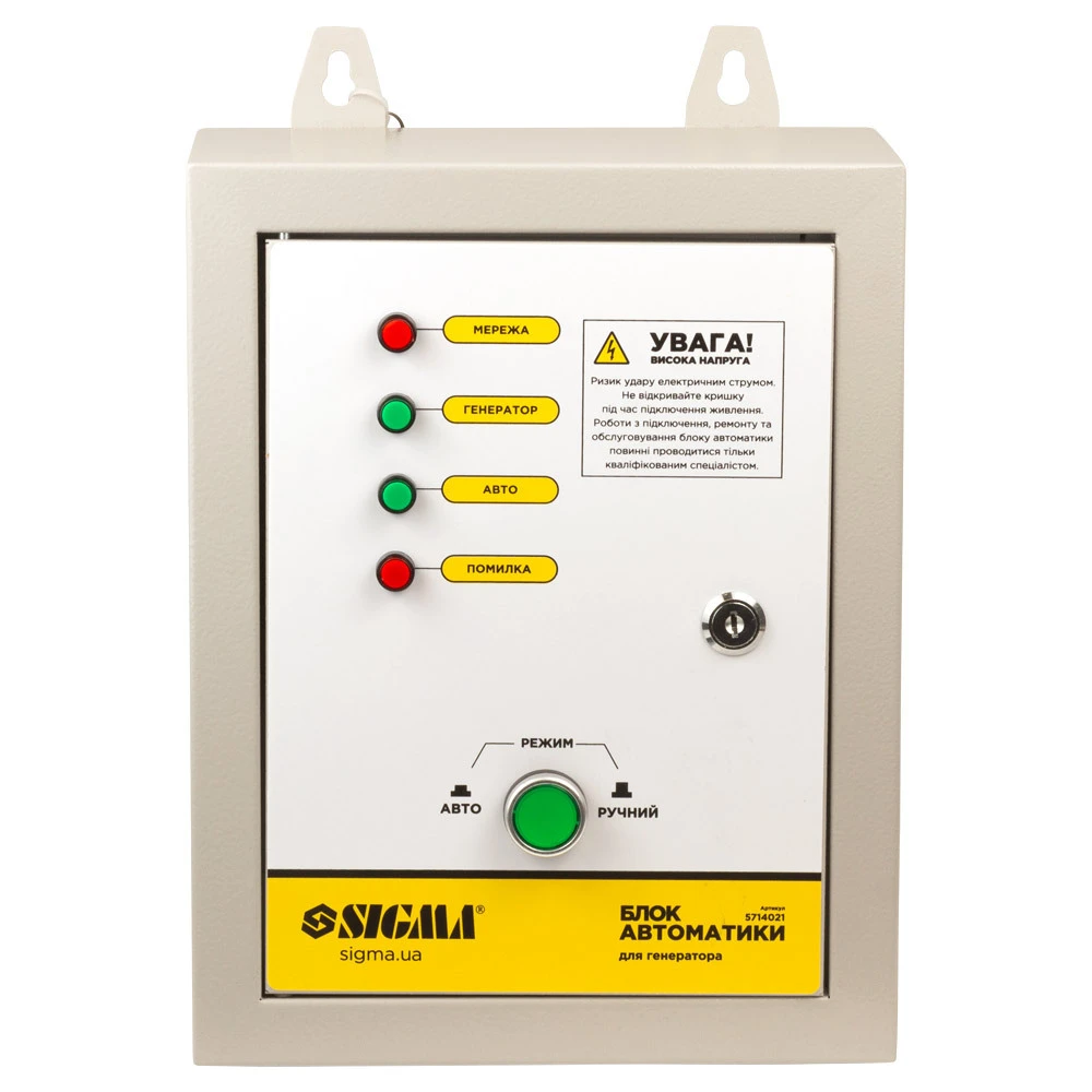 Блок автоматики 220В для інверторних генераторів до 7кВт SIGMA (5714021) застосовується для спільної роботи з генераторами, які мають опцію автоматичної роботи і винесений на передню панель роз’єм для підключення блоку автоматики.
