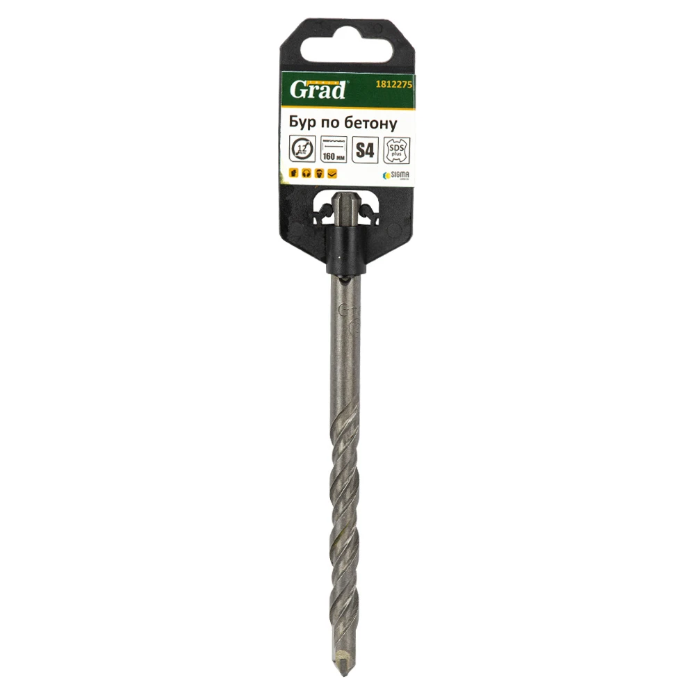 Бур по бетону SDS-plus твердосплав S4 Ø12×160мм GRAD (1812275) призначений для ударного свердління отворів в бетоні, цеглі, камені, твердих вапняках. Використовують на легких і середніх перфораторах з затискачем SDS-plus.