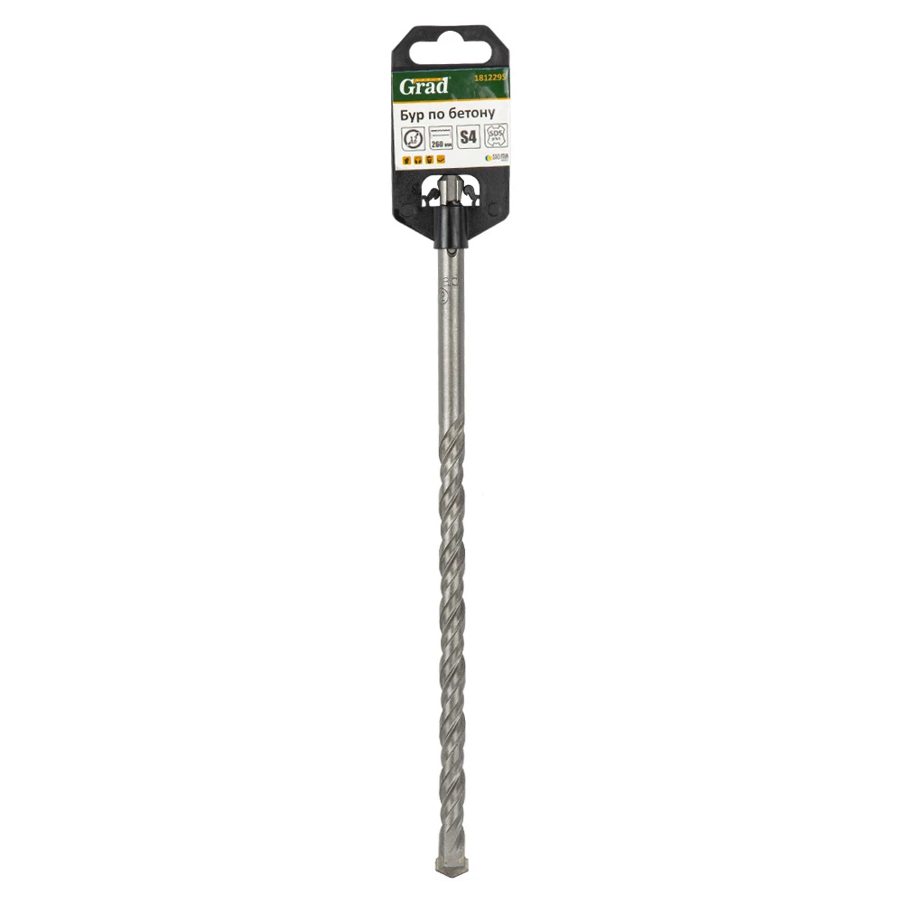 Бур по бетону SDS-plus твердосплав S4 Ø12×260мм GRAD (1812295) призначений для ударного свердління отворів в бетоні, цеглі, камені, твердих вапняках. Використовують на легких і середніх перфораторах з затискачем SDS-plus.