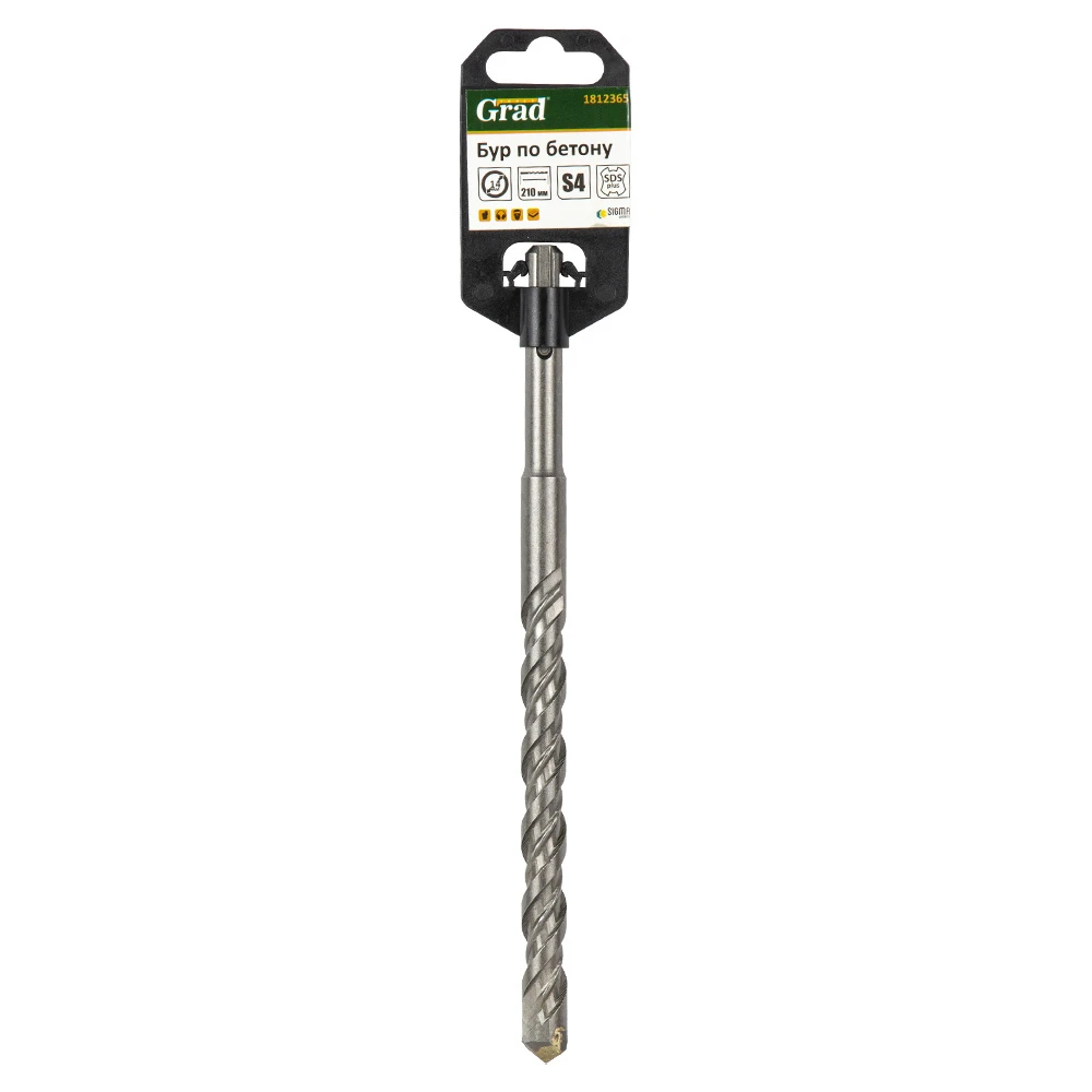 Бур по бетону SDS-plus твердосплав S4 Ø14×210мм GRAD (1812365) призначений для ударного свердління отворів в бетоні, цеглі, камені, твердих вапняках. Використовують на легких і середніх перфораторах з затискачем SDS-plus.