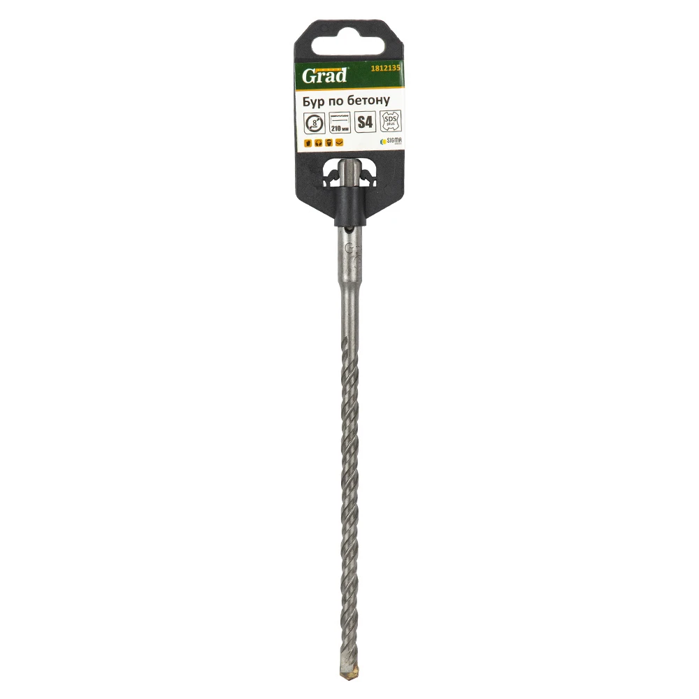 Бур по бетону SDS-plus твердосплав S4 Ø8×210мм GRAD (1812135) призначений для ударного свердління отворів в бетоні, цеглі, камені, твердих вапняках. Використовують на легких і середніх перфораторах з затискачем SDS-plus.