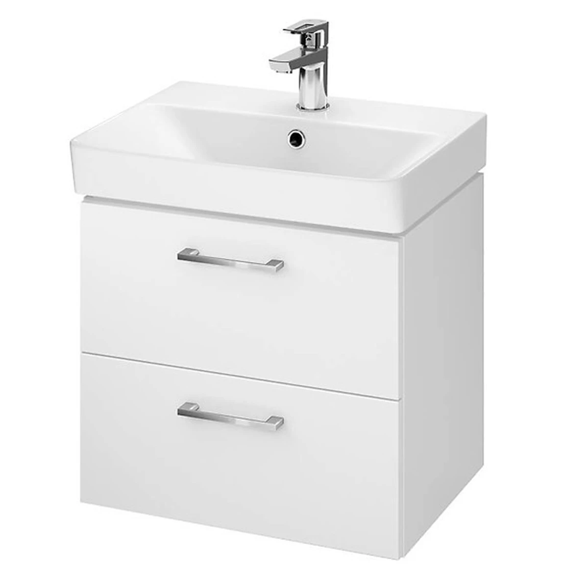 У комплект входить підвісна шафа для LARA WHITE SLIM 50 з умивальником MILLE SLIM 50. Передня частина та корпус шафи виготовлені з ДСП 16 мм, лаковані білим кольором. У шафі є дві просторі шухляди з м’яким закриттям і довгими хромованими ручками.