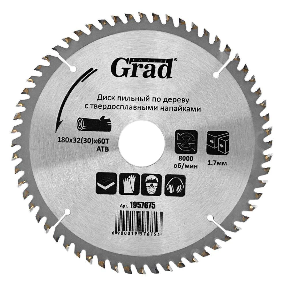 Диск пиляльний по дереву з твердосплавними напайками Ø180×32 (30)×60Т, 8000об/хв GRAD (1957675) призначений для виконання будь-яких стандартних робіт по дереву, різання виробів з м'якої і твердої деревини, фанери, ДСП, ДВП, МДФ і комбінованих матеріалів на основі дерева. Додатковою перевагою є можливість заміни і заточування зуба.