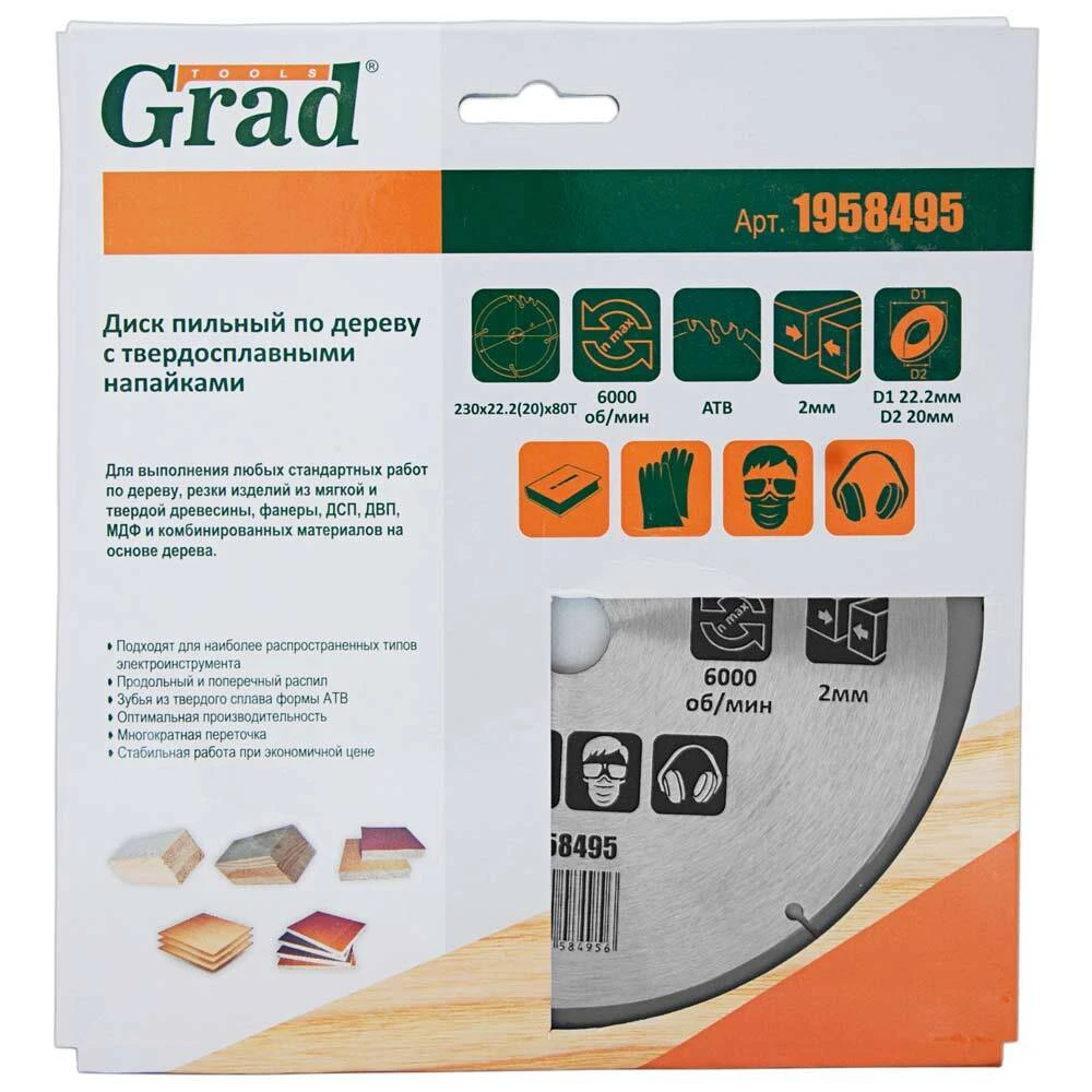 Диск пиляльний по дереву з твердосплавними напайками Ø230×22.2 (20)×80Т, 6000об/хв GRAD (1958495) призначений для виконання будь-яких стандартних робіт по дереву, різання виробів з м'якої і твердої деревини, фанери, ДСП, ДВП, МДФ і комбінованих матеріалів на основі дерева. Додатковою перевагою є можливість заміни і заточування зуба.