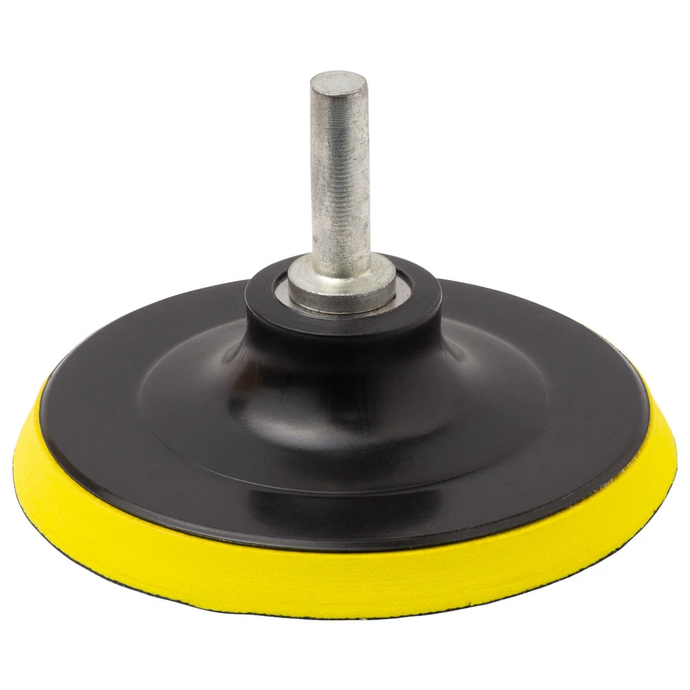 М’яка підкладка застосовується для шліфування опуклих частин при фінальній шліфовці. Вона допомагає зменшити тиск на поверхню і не дає абразиву врізатися глибоко, пом’якшує дію шліфувального круга. Таким чином круг облягає форму деталі і прибирає тільки подряпини, а не змінює форму поверхні, навіть коли підошва знаходиться під кутом. Призначений для кріплення абразивних кругів на «липучці» з ворсовою основою, а також полірувальних насадок при проведенні шліфувальних і полірувальних робіт за допомогою електродрилі та кутової шліфувальної машинки. Перехідник «електродриль-КШМ», виготовлений з вуглецевої сталі, дозволяє використовувати диски (опорні тарілки), призначені для КШМ, з електродрилем.