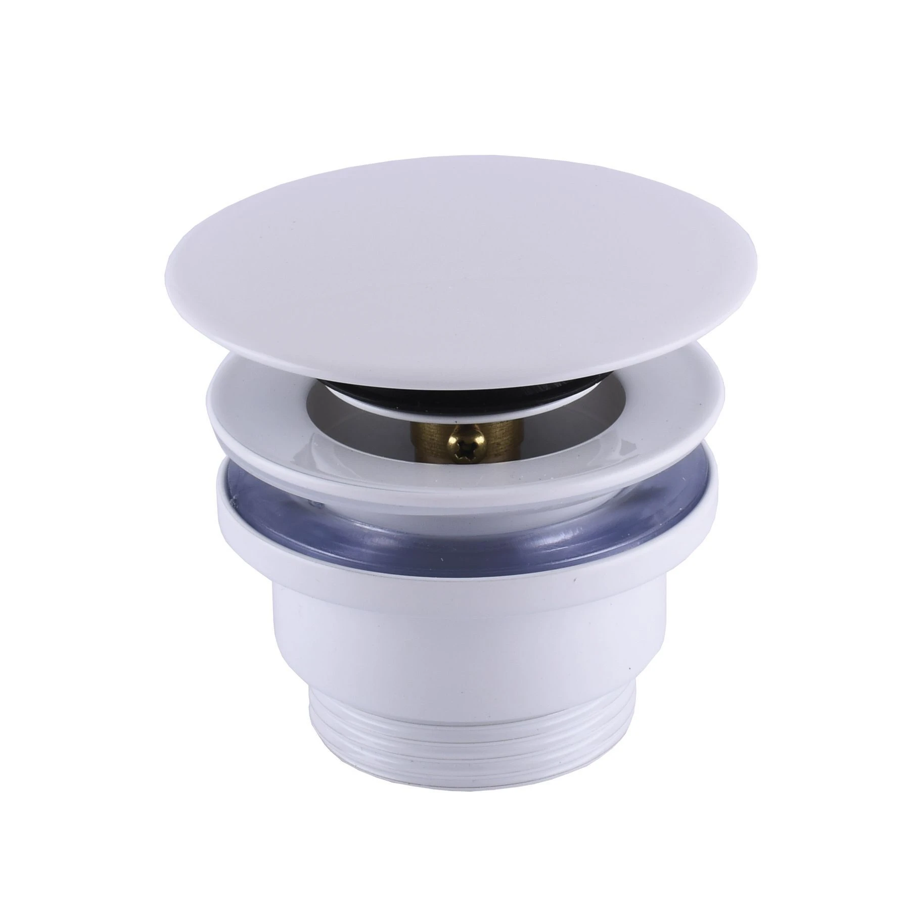 Клапан типу click-clack з функцією переливу виготовлений з високоякісної латуні з покриттям білого кольору, Красивий і витончений дизайн. Підходить для використання з раковинами.
