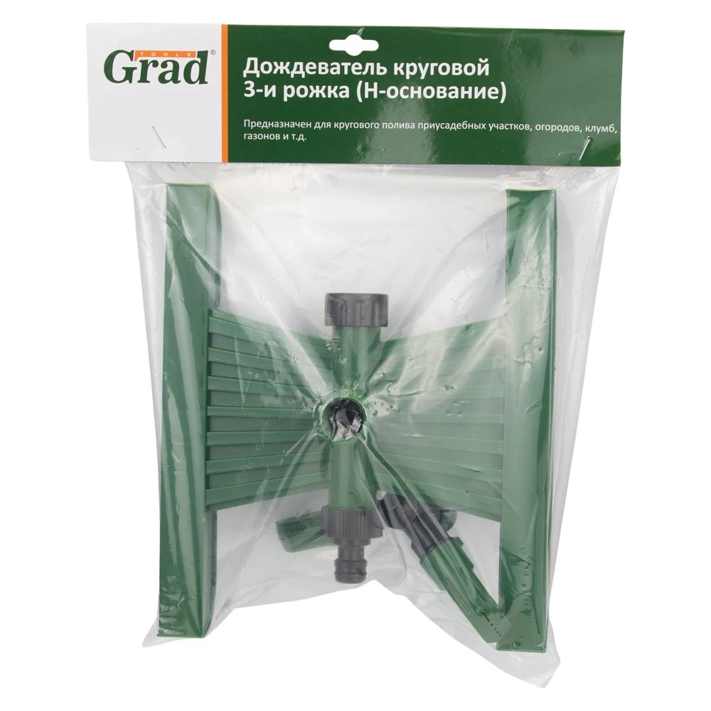 Дощувач руговий 3 ріжка Н-основа (ABS) (5014395) призначений для кругового поливу присадибних ділянок, городів, клумб, газонів і т.д.