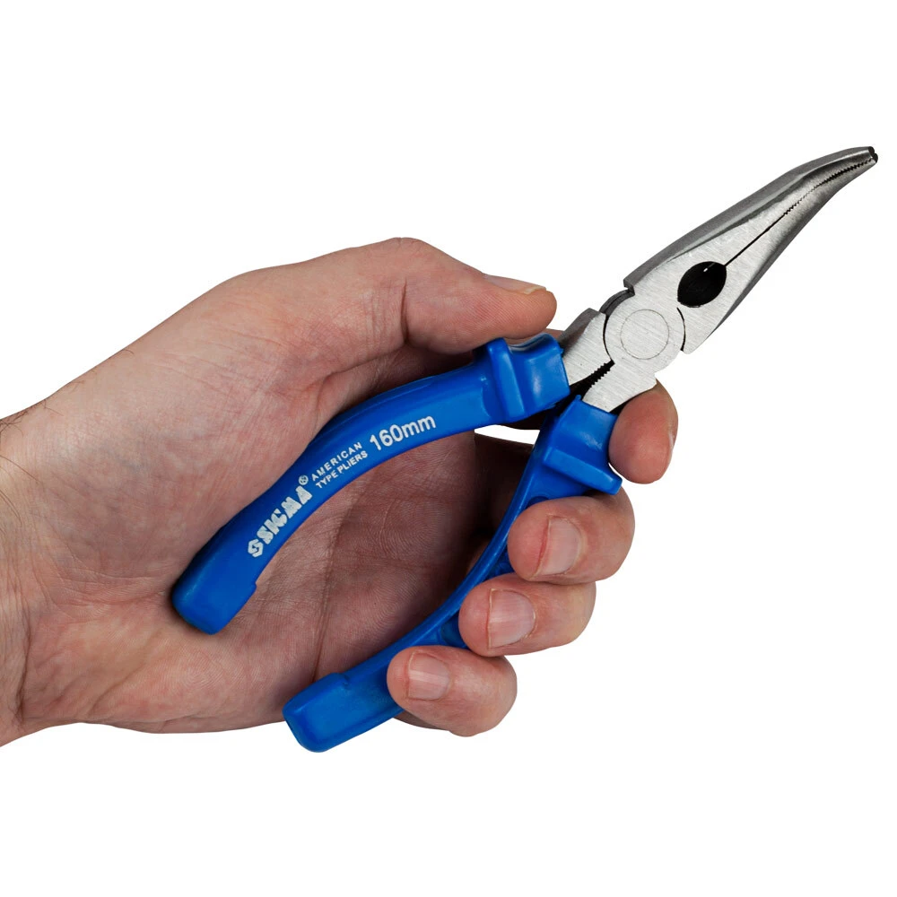 Довгогубці вигнуті 160мм сині SIGMA (4356161) застосовуються для виконання слюсарних, електромонтажних та ремонтних робіт.