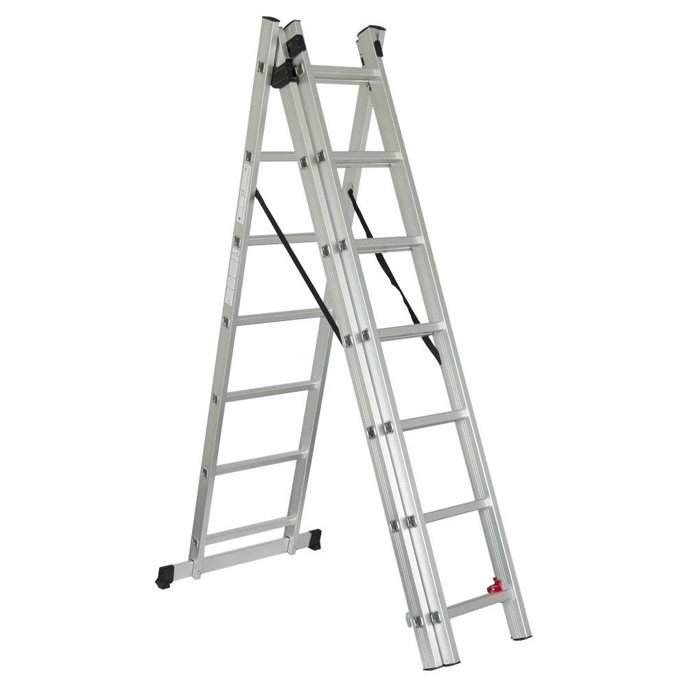 Драбина розкладна універсальна 7 сходинок SIGMA (5032314) призначена для внутрішніх і зовнішніх будівельних і ремонтних робіт, збирання врожаю в саду.