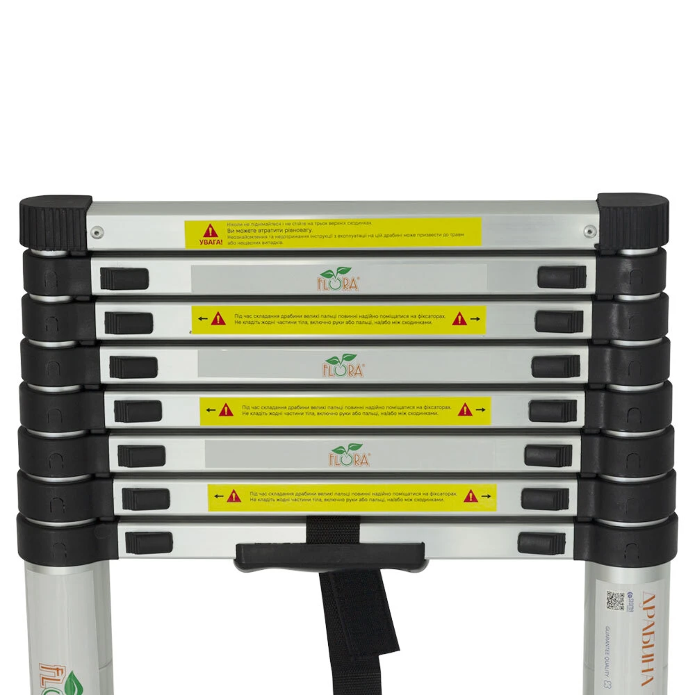 Драбина телескопічна 9 сходинок 2.6м FLORA (5033594) - це розсувна мобільна конструкція, що складається із секцій, які з’єднуються між собою фіксаторами. Застосовується як приставна драбина. Це зручний інструмент для оздоблювачів, монтажників, будівельників, під час прокладання електричних кабелів.