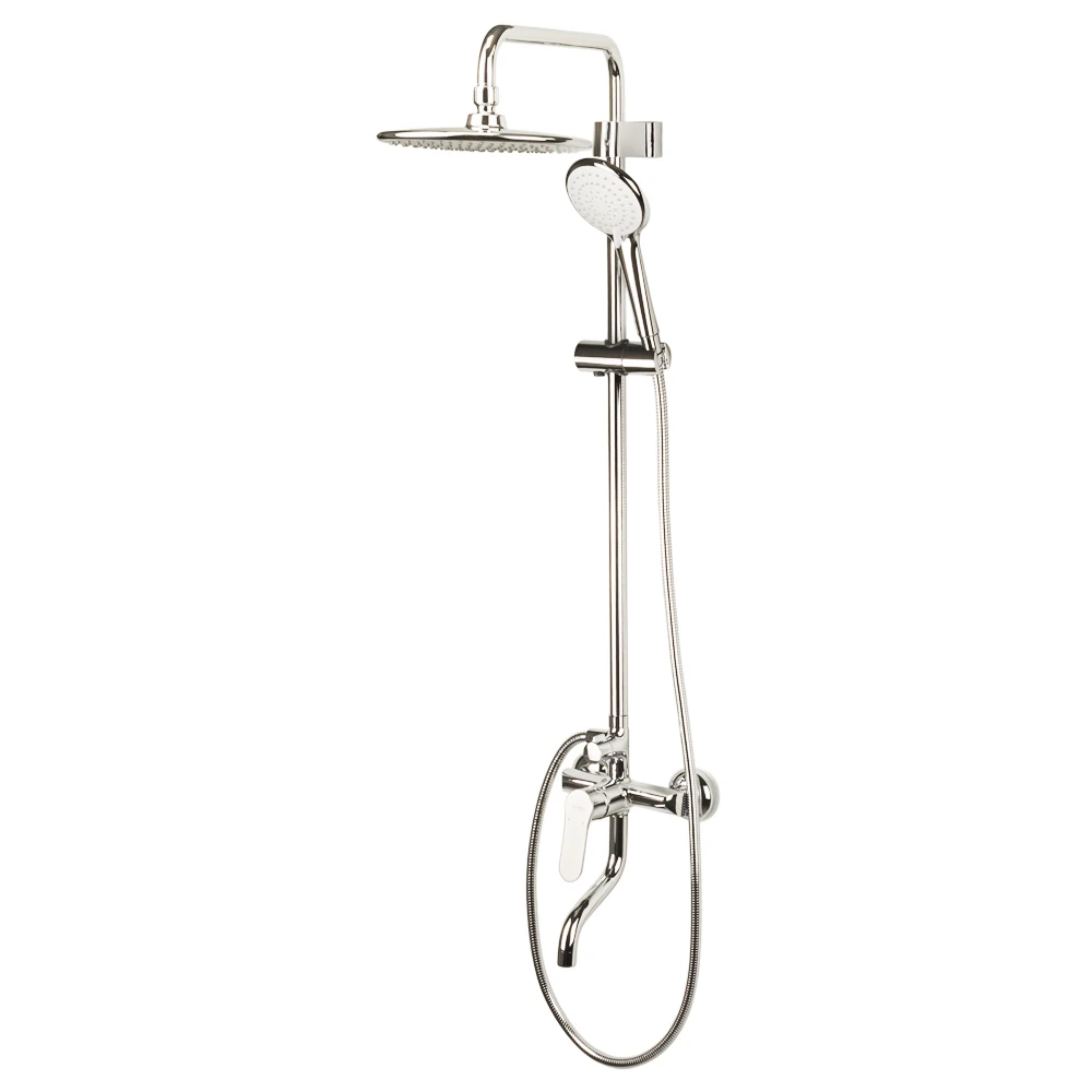 Душова система – це комплект різних сантехнічних пристроїв для установки у ванній кімнаті, в основі якої – змішувач, штанга, верхній душ, ручний душ.