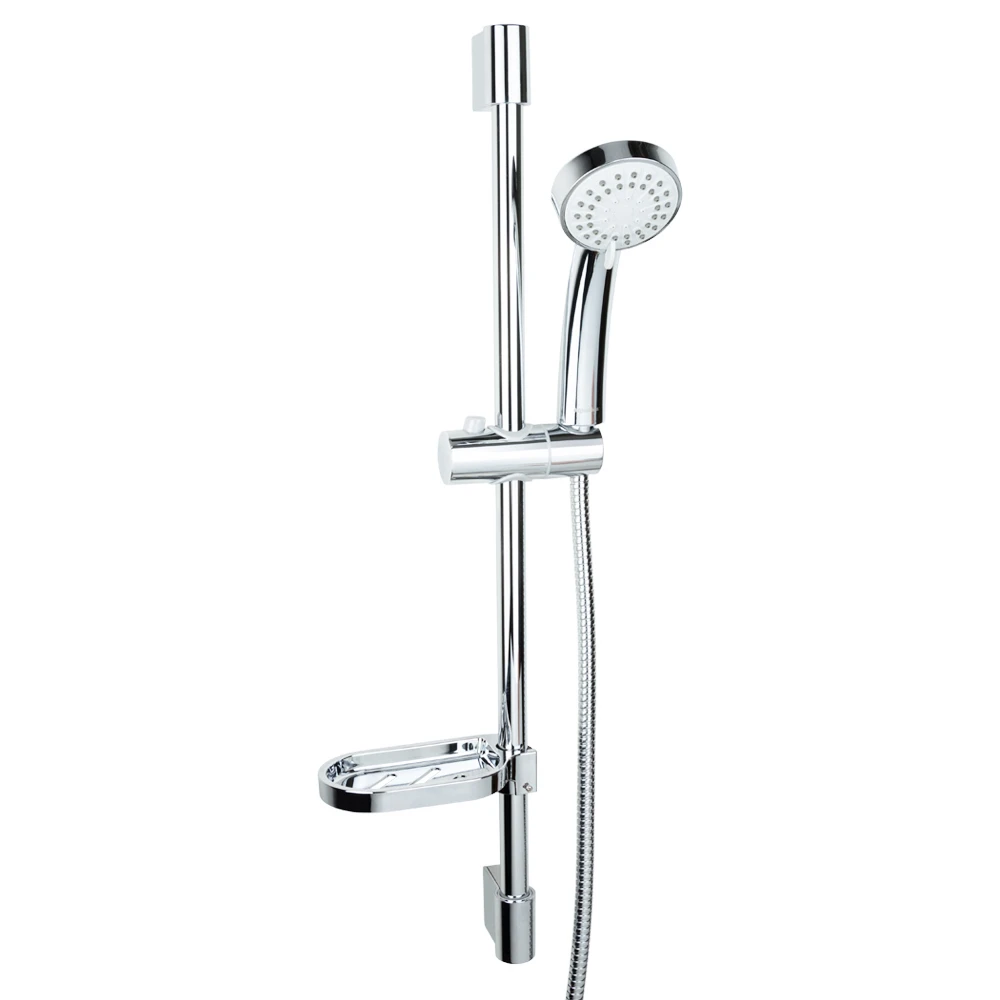 Душова стійка з душовим комплектом - це комплект, що складається з ручної лійки зі шлангом, тримача для неї та штанги-труби (також залежно від моделі може бути верхній душ). Штанга встановлюється паралельно стіні за допомогою металевих або пластикових розпорників і вже безпосередньо до цієї штанги кріпляться всі інші елементи.