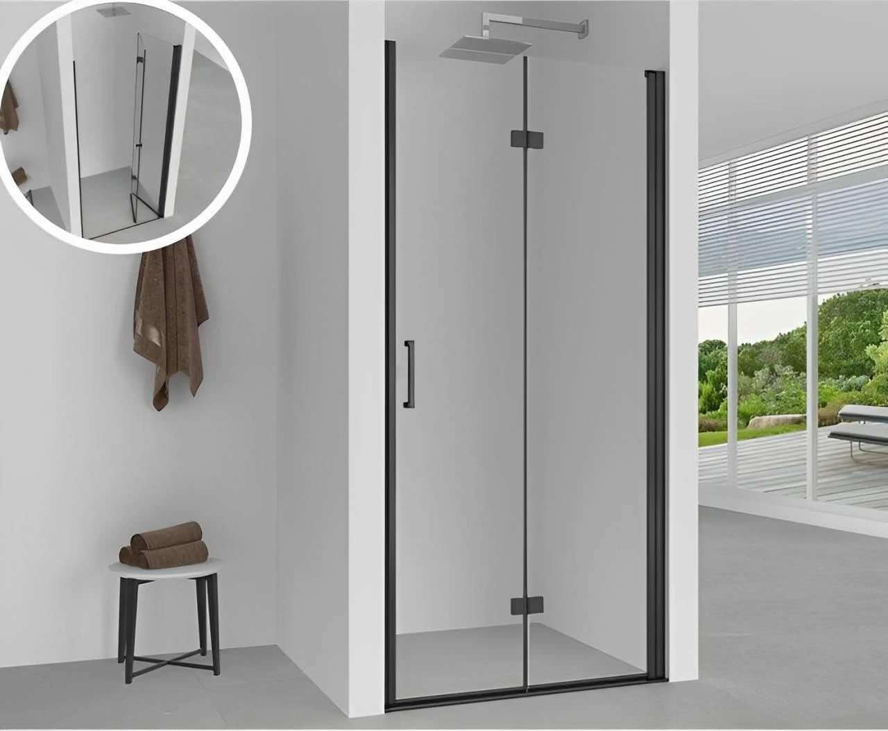 • Поворотно-складні двері на 180° (відкриття всередину)