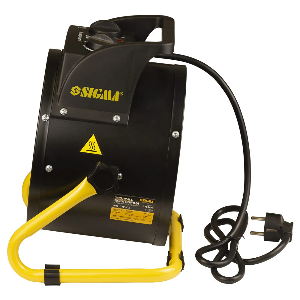 Електрична теплова гармата з керамічним нагрівачем 3.0 кВт (метал) SIGMA (5359471) – ефективна та компактна модель, призначена для обігріву або вентиляції житлових та нежитлових приміщень, а також для просушування різних поверхонь на будівельних об'єктах. Модель обладнана керамічним нагрівальним елементом та надійним вентилятором, має два режими обігріву та режим вентиляції. У неї зручне регулювання кута нахилу та мережевий кабель завдовжки 1.6 м.