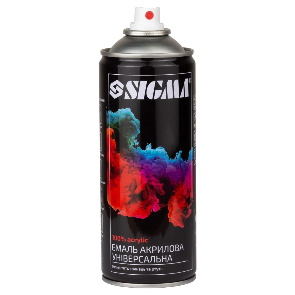 100% акрилова, швидкосохнуча аерозольна емаль з прекрасною адгезією до більшості поверхонь, таких як метал, бетон, дерево, скло, пластик, гіпсокартон та інших матеріалів.