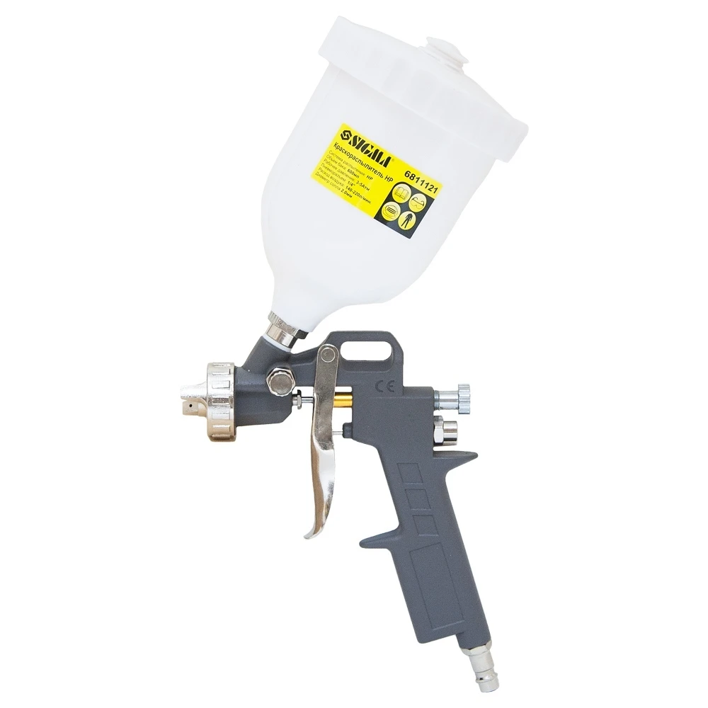 Фарборозпилювач HP Ø2мм з в/б (пласт) SIGMA (6811121) з класичною системою розпилення HP (високий тиск, низький витрата повітря) з верхньою подачею фарби. Дуже добре підходить для застосування в побуті і в промисловості, автомалярних майстерень, СТО, будівництві, меблевому виробництві.