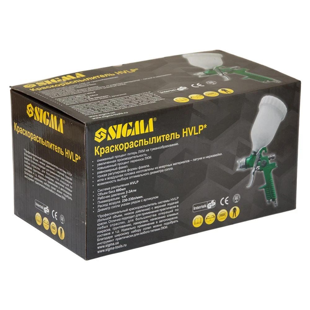 Професійний Фарборозпилювач Ø1.3 з в/б (зелений) SIGMA (6812101) системи HVLP (великий обсяг, низький тиск) з верхньою подачею фарби. Дуже добре підходить для застосування в автомалярних майстерень, СТО, в меблевому виробництві, в будівництві і в інших галузях.