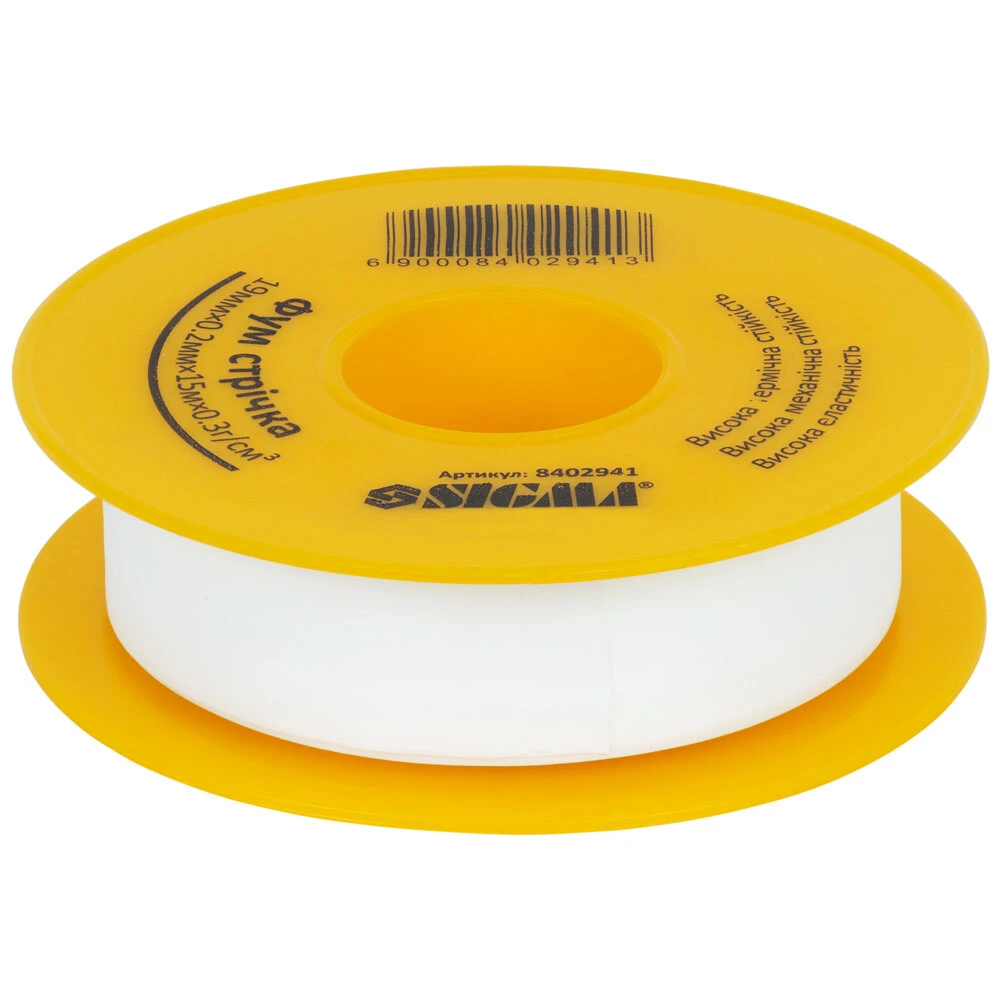 Фторопластова (ФУМ) стрічка 0.2мм×19мм×15м SIGMA (8402941) або фторопластовий ущільнювачий - це тонкий синтетичний ущільнювач, що випускається у вигляді стрічки, як правило, має напівпрозорий або матовий відтінок. Завдяки вмісту фтору, фум стрічка має досить високу механічну і термічну стійкість. Вона не старіє, не рветься при розтягуванні і не втрачає своїх властивостей під впливом агресивного хімічного середовища або високої температури. Застосовується для ущільнення трубопроводів загальнопромислового типу або для систем, що працюють агресивними хімічними середовищами.