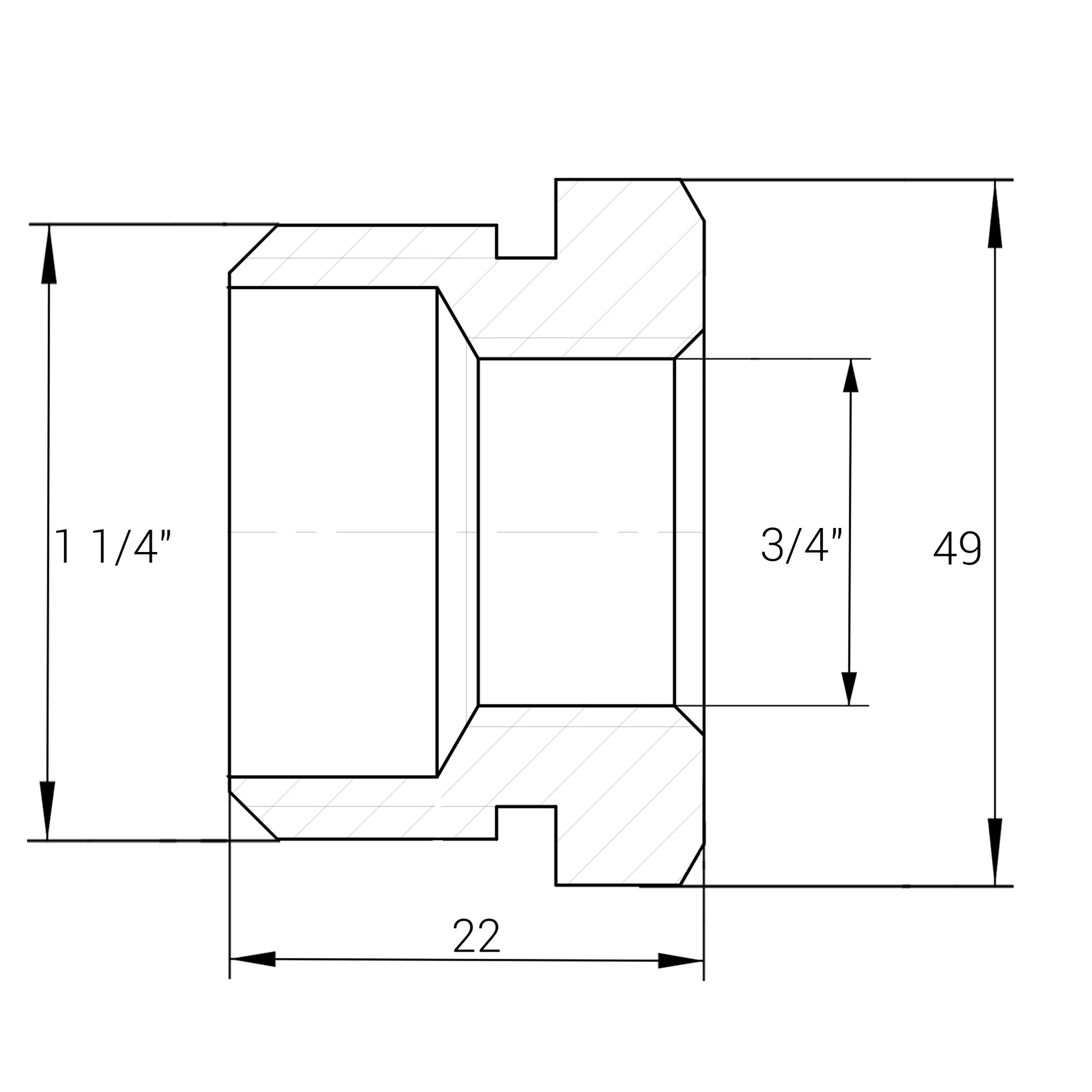-З'єднання: 1 1/4″ Зовнішня різьба х 3/4″ Внутрішня різьба