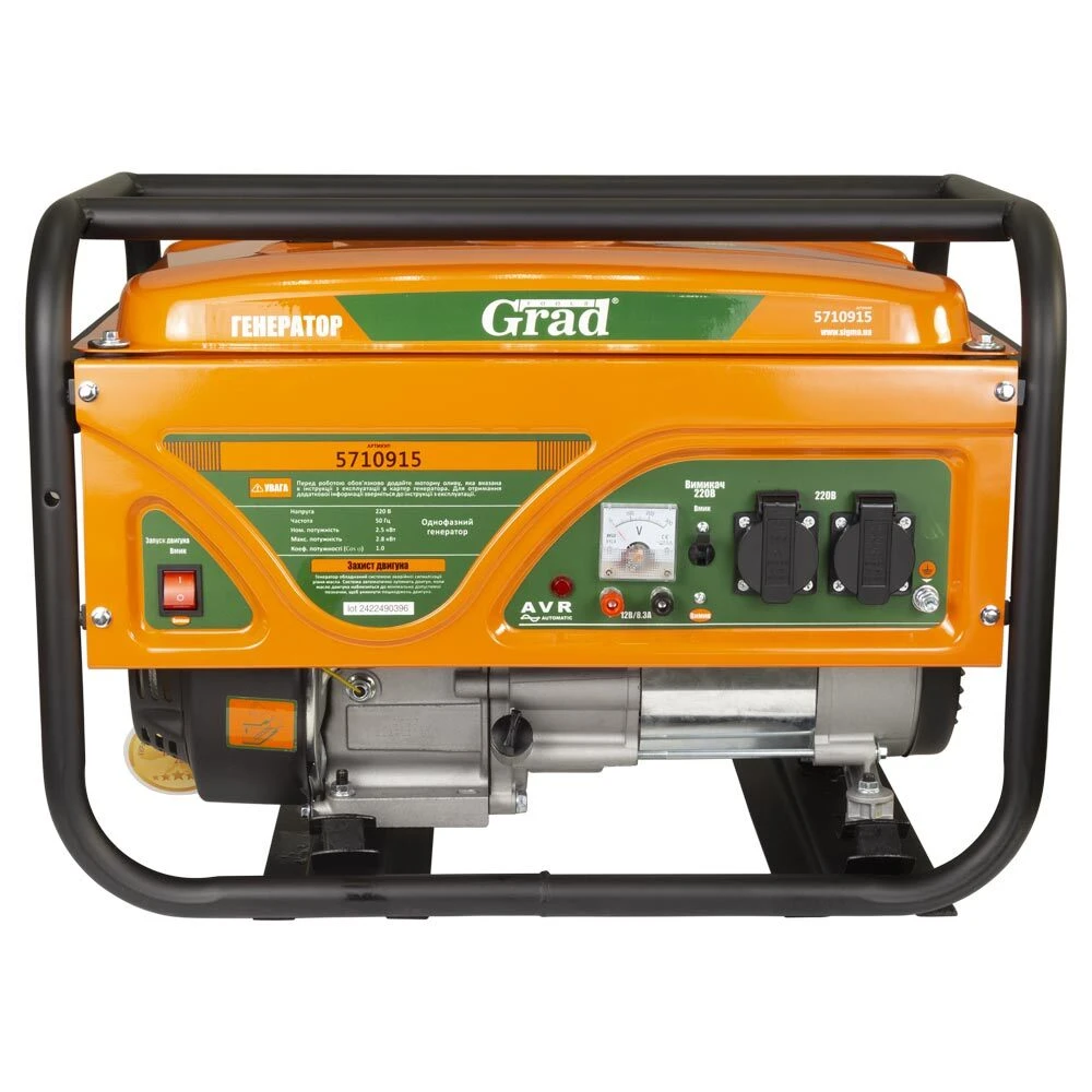 Генератор бензиновий 2.5/2.8кВт 4-х тактний ручний запуск GRAD (5710915)