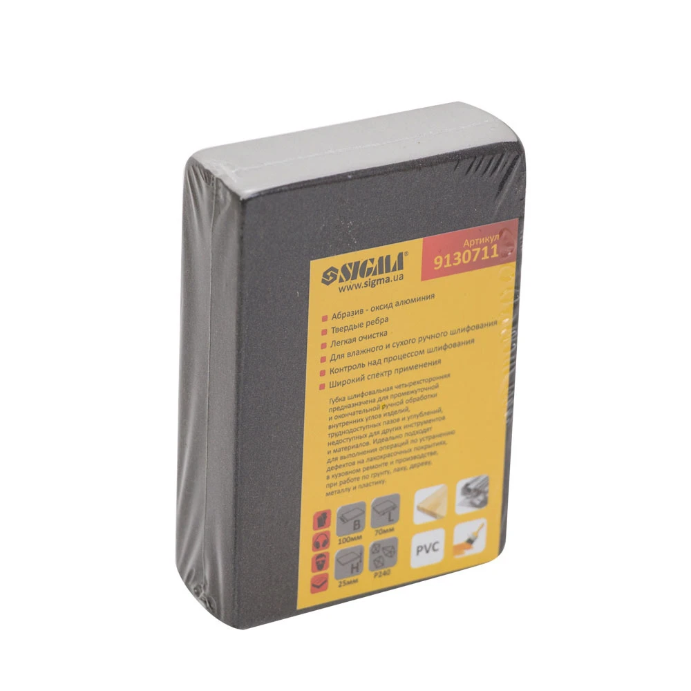 Губка шліфувальна чотиристороння 100×70×25мм P240 SIGMA (9130711)