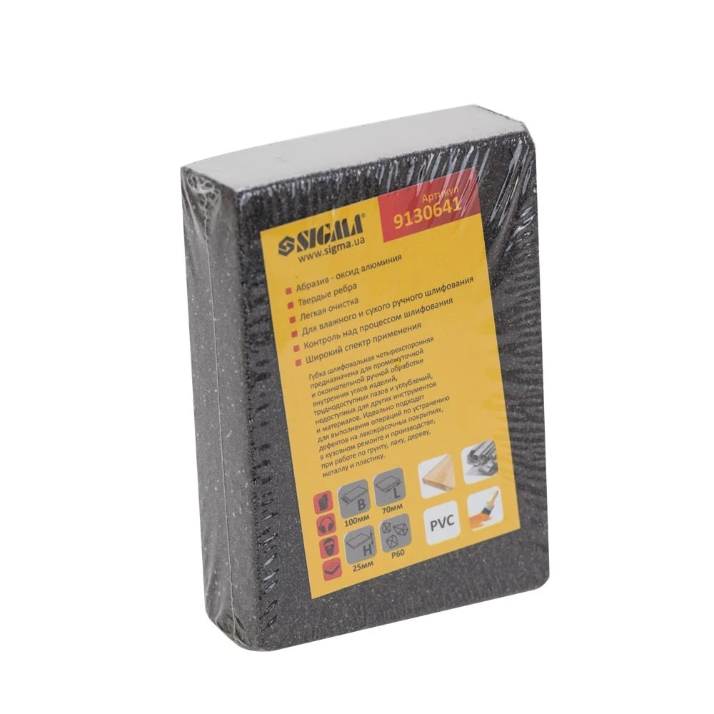 Губка шліфувальна чотиристороння 100×70×25мм P60 SIGMA (9130641)