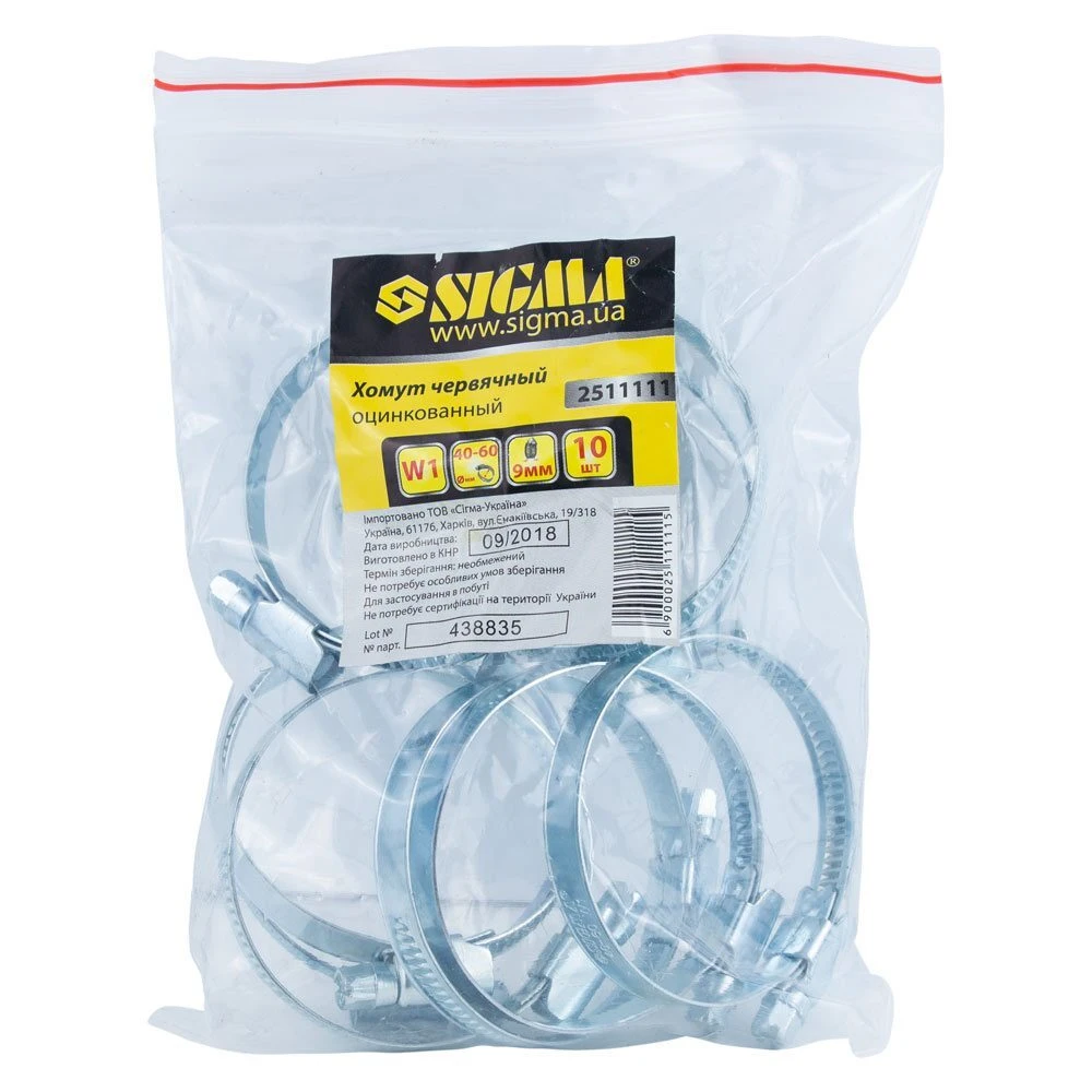 Хомут черв'ячний оцинкований 9мм D40-60мм 10шт SIGMA (2511111)
