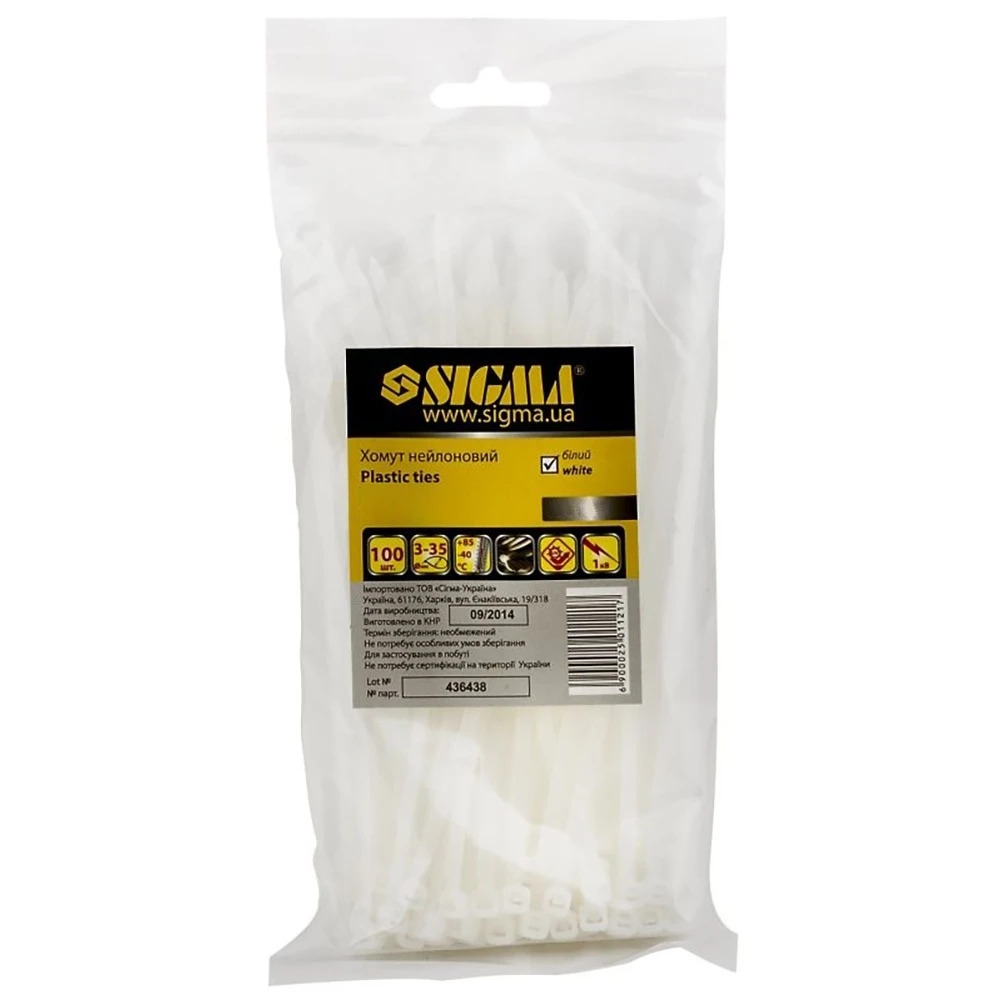 Хомут нейлон 7.9×350мм 50шт (білий) SIGMA (2501371)