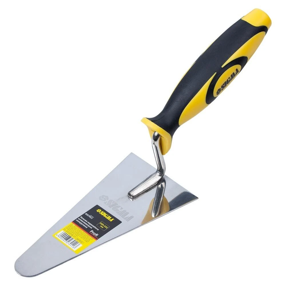 Кельма нержавіюча шпаклювальна закруглена Profi 160×101мм SIGMA (8327011) призначена для розмішування, відмірювання та нанесення будівельних гіпсових або цементних розчинів на різні поверхні.