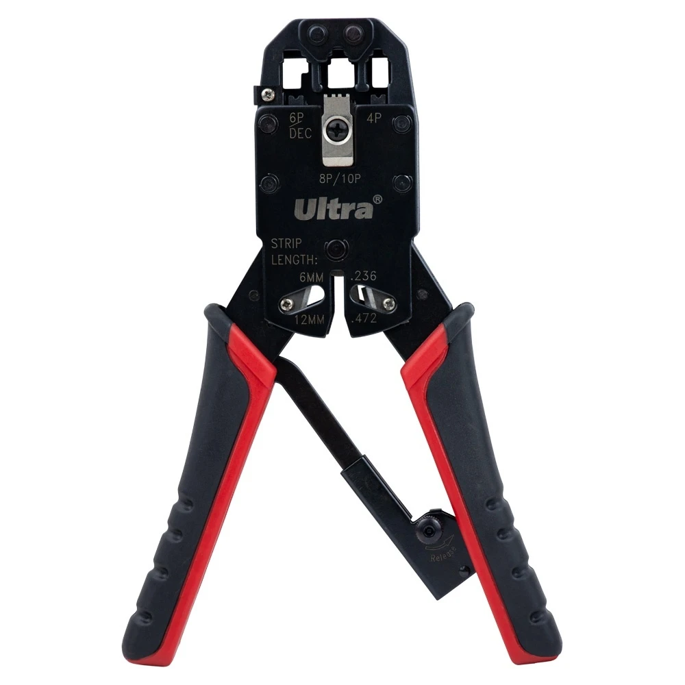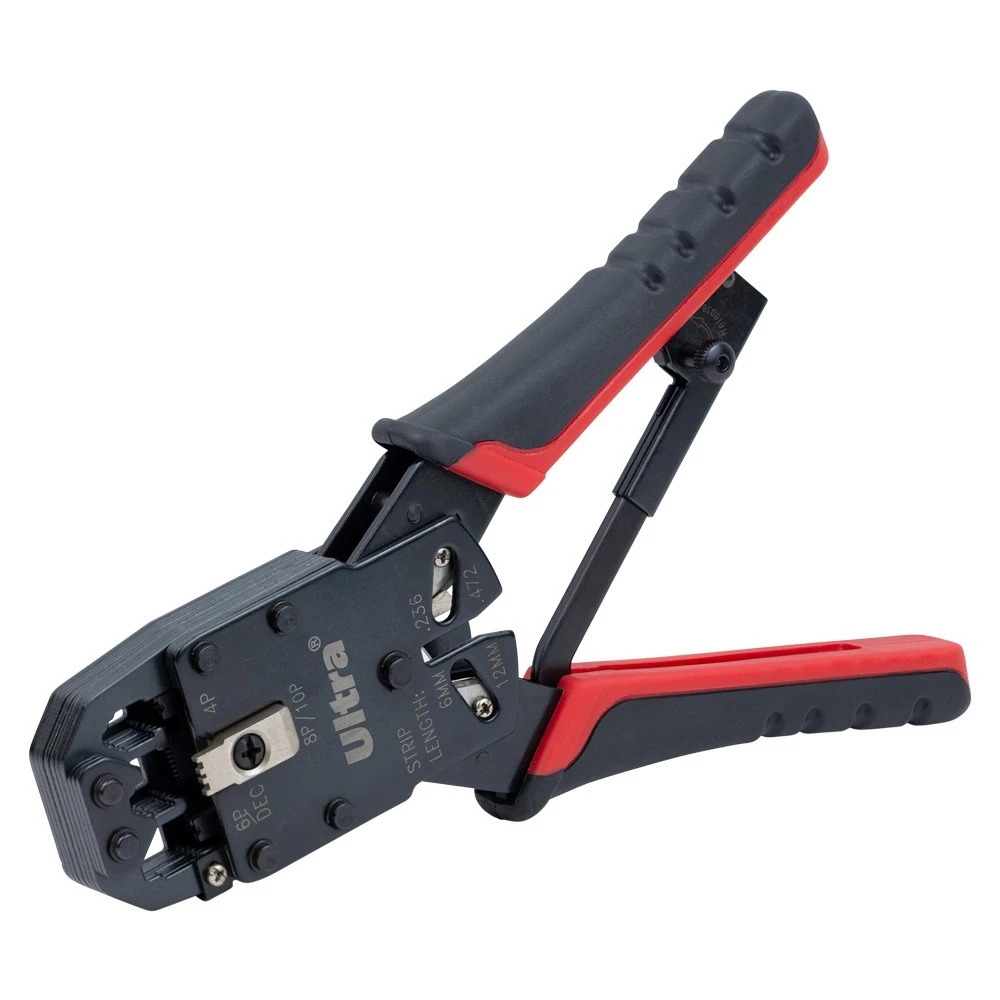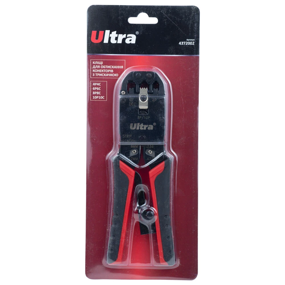 Кліщі для обтиску телекомунікаційних конекторів 4Р4С, 6Р6С, 8Р8С, 10Р10С з тріскачкою ULTRA (4372002)