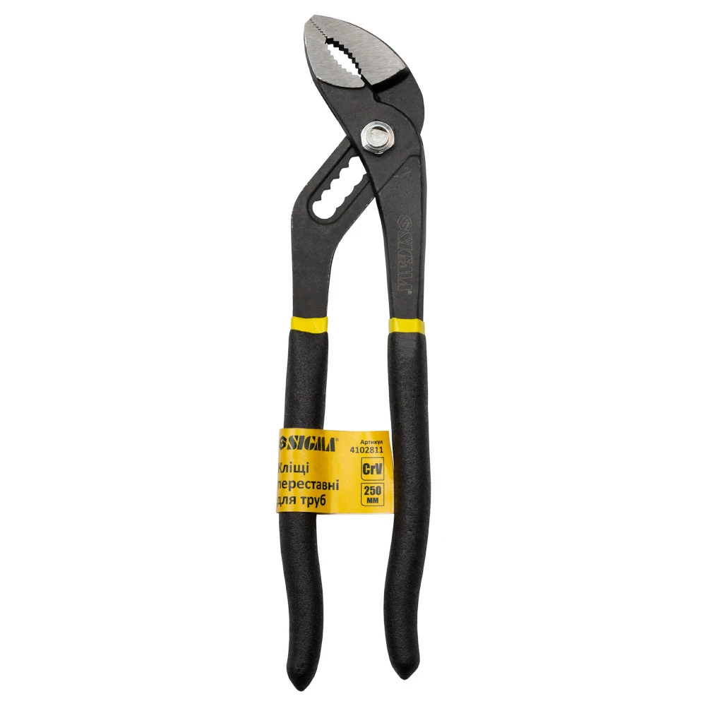 Кліщі переставні для труб 250мм обгумовані рукоятки SIGMA (4102811) призначені для закручування та відкручування гайок, болтів, утримання деталей різних форм і розмірів.