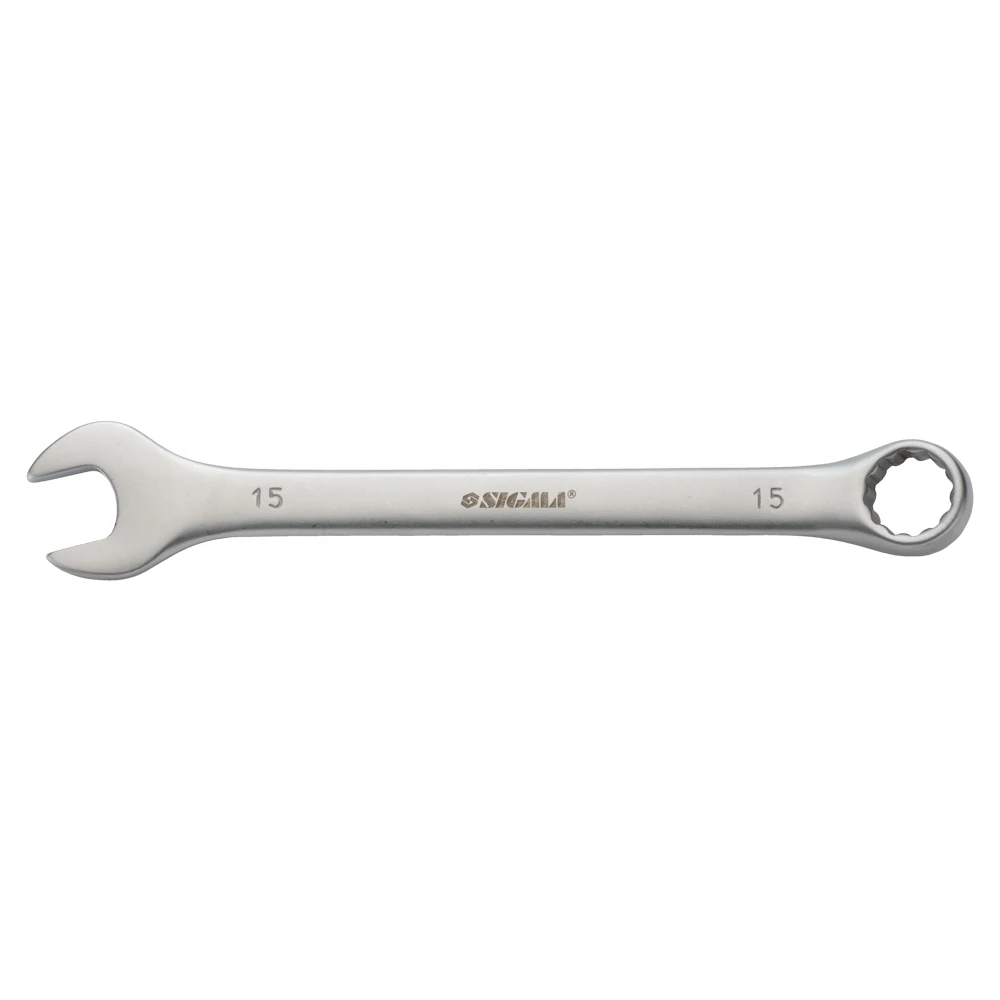 Ключ ріжково-накидний 15мм CrV satine з підвісом SIGMA (6021601) - рожково-накидні ключі є необхідним інструментом при складанні і розбиранні болтових з'єднань, що мають шестигранний профіль. Призначені для монтажу різьбових з'єднань і обслуговування кріплення, який відповідає розміру ключа.