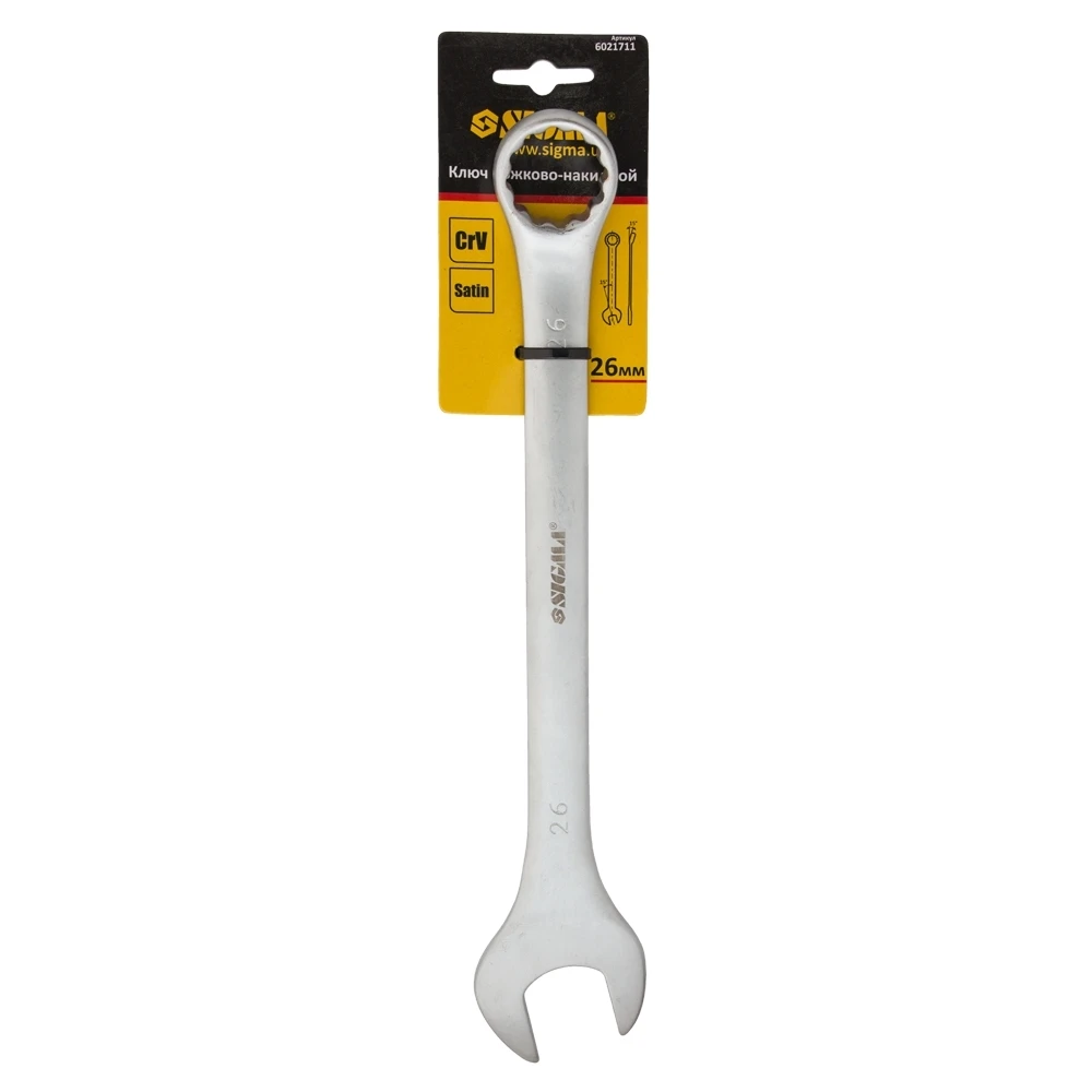 Ключ ріжково-накидний 17мм CrV satine з підвісом SIGMA (6021621) - рожково-накидні ключі є необхідним інструментом при складанні і розбиранні болтових з'єднань, що мають шестигранний профіль. Призначені для монтажу різьбових з'єднань і обслуговування кріплення, який відповідає розміру ключа.