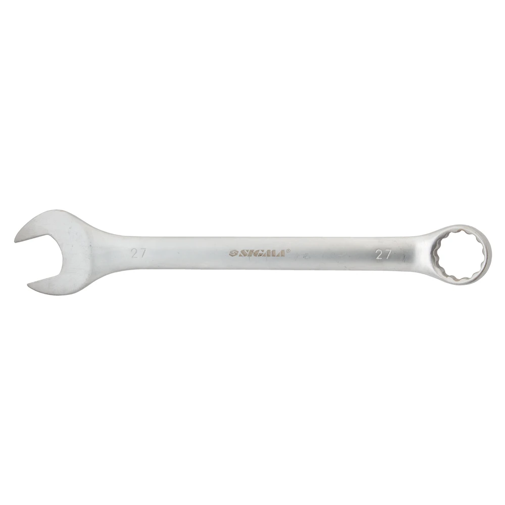 Ключ ріжково-накидний 27мм CrV satine з підвісом SIGMA (6021721) - рожково-накидні ключі є необхідним інструментом при складанні і розбиранні болтових з'єднань, що мають шестигранний профіль. Призначені для монтажу різьбових з'єднань і обслуговування кріплення, який відповідає розміру ключа.