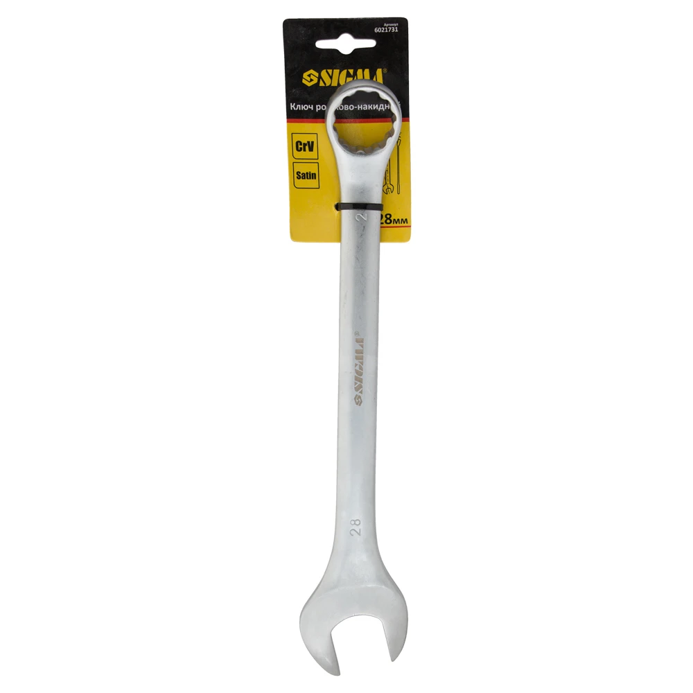 Ключ ріжково-накидний 28мм CrV satine з підвісом SIGMA (6021731) - рожково-накидні ключі є необхідним інструментом при складанні і розбиранні болтових з'єднань, що мають шестигранний профіль. Призначені для монтажу різьбових з'єднань і обслуговування кріплення, який відповідає розміру ключа.