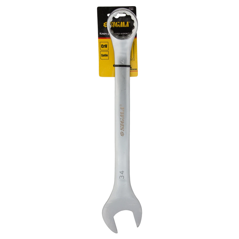 Ключ ріжково-накидний 34мм CrV satine з підвісом SIGMA (6021781) - рожково-накидні ключі є необхідним інструментом при складанні і розбиранні болтових з'єднань, що мають шестигранний профіль. Призначені для монтажу різьбових з'єднань і обслуговування кріплення, який відповідає розміру ключа.