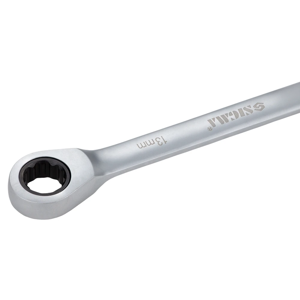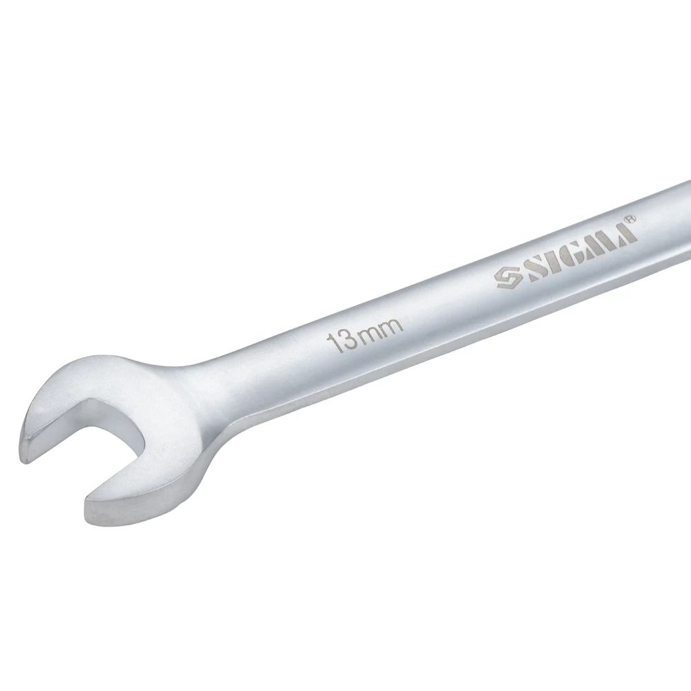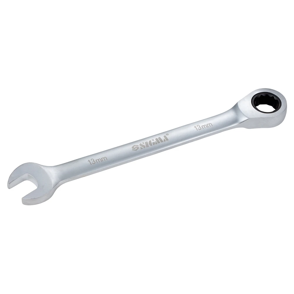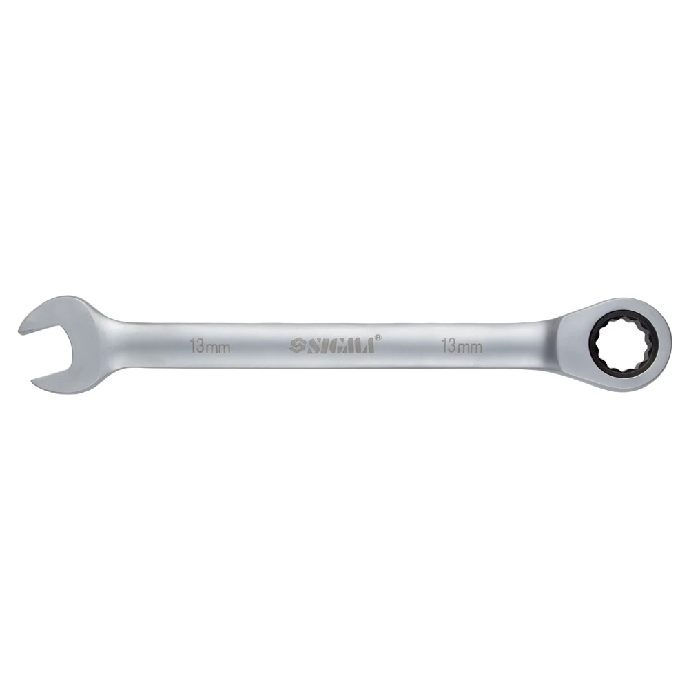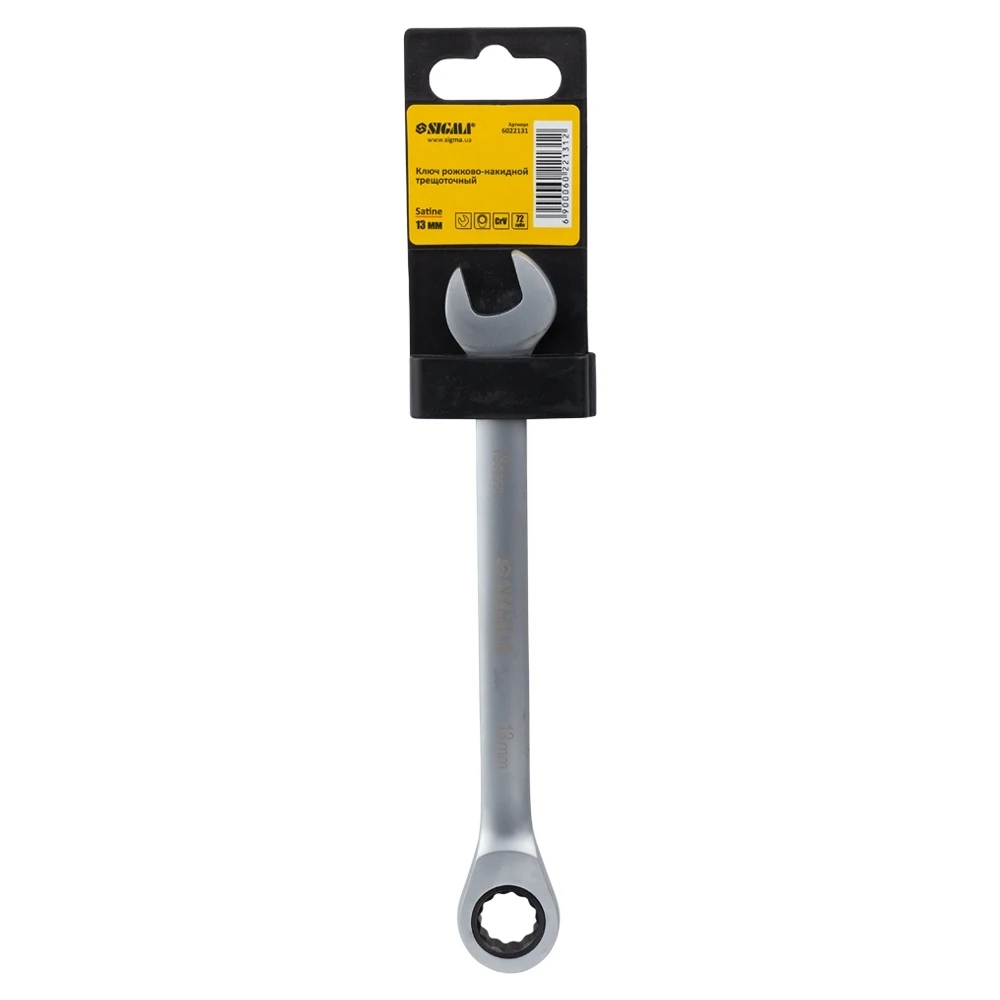 Ключ ріжково-накидний з тріскачкою 13мм CrV SIGMA (6022131) виготовлений з хром-ванадієвої сталі, має антикорозійне покриття з хрому. Рожковий і кільцевий зів ключа відполірований.