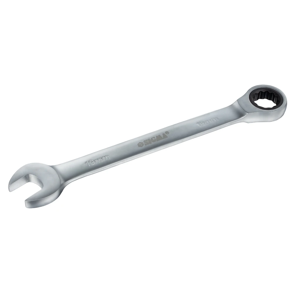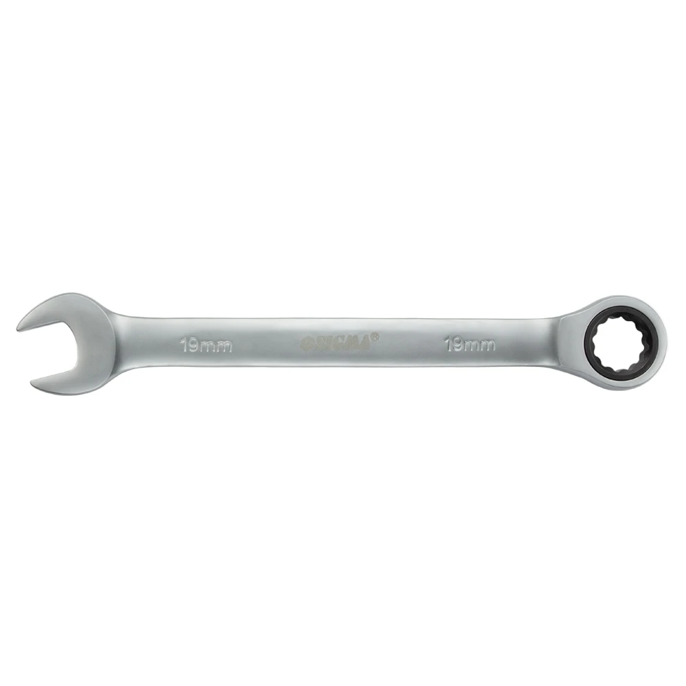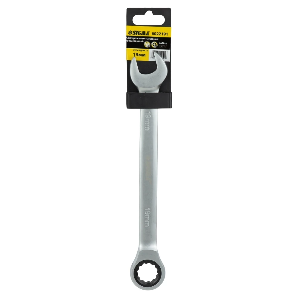 Ключ ріжково-накидний з тріскачкою 19мм CrV SIGMA (6022191) виготовлений з хром-ванадієвої сталі, має антикорозійне покриття з хрому. Рожковий і кільцевий зів ключа відполірований.