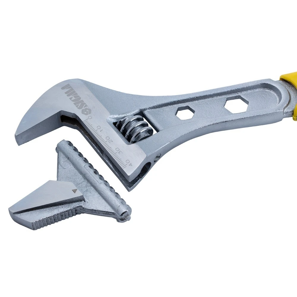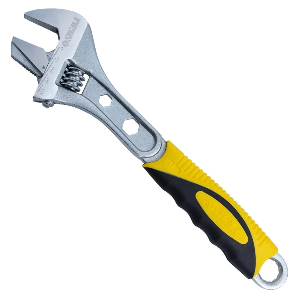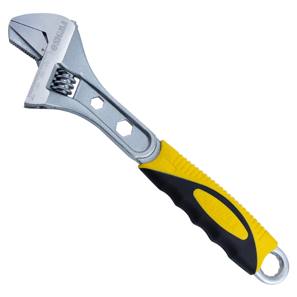 Ключ розвідний з переставною губкою 300мм, 0-41мм CrV (TPR) Sigma (4100941) призначений для відгвинчування і загвинчування гайок, болтів, гвинтів та інших різьбових з'єднань. Зручний при сантехнічних роботах, ремонті автомобілів і велосипедів. Виготовлений із високоякісної хромованадієвої сталі з антикорозійним покриттям. Має рухому переставну губку, зазубрену з одного боку, завдяки чому може використовуватися як трубний ключ. На губках ключів нанесено міліметрову шкалу для регулювання ширини захоплення. Двокомпонентна ергономічна ручка зручно лежить у руці. Ребриста поверхня ручки не дозволяє ключу вислизнути з руки під час роботи. Ключ оснащений отвором для підвішування.