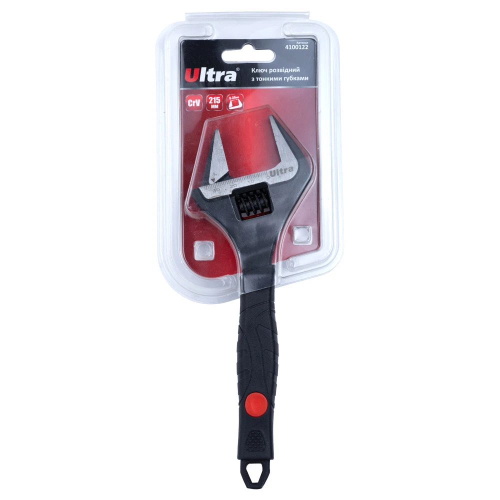 Ключ розвідний з тонкими губами 215мм, 0-39мм CrV ULTRA (4100122) призначений для відгвинчування і загвинчування гайок, болтів, гвинтів та інших різьбових з'єднань. Зручний при сантехнічних роботах, ремонті автомобілів і велосипедів.