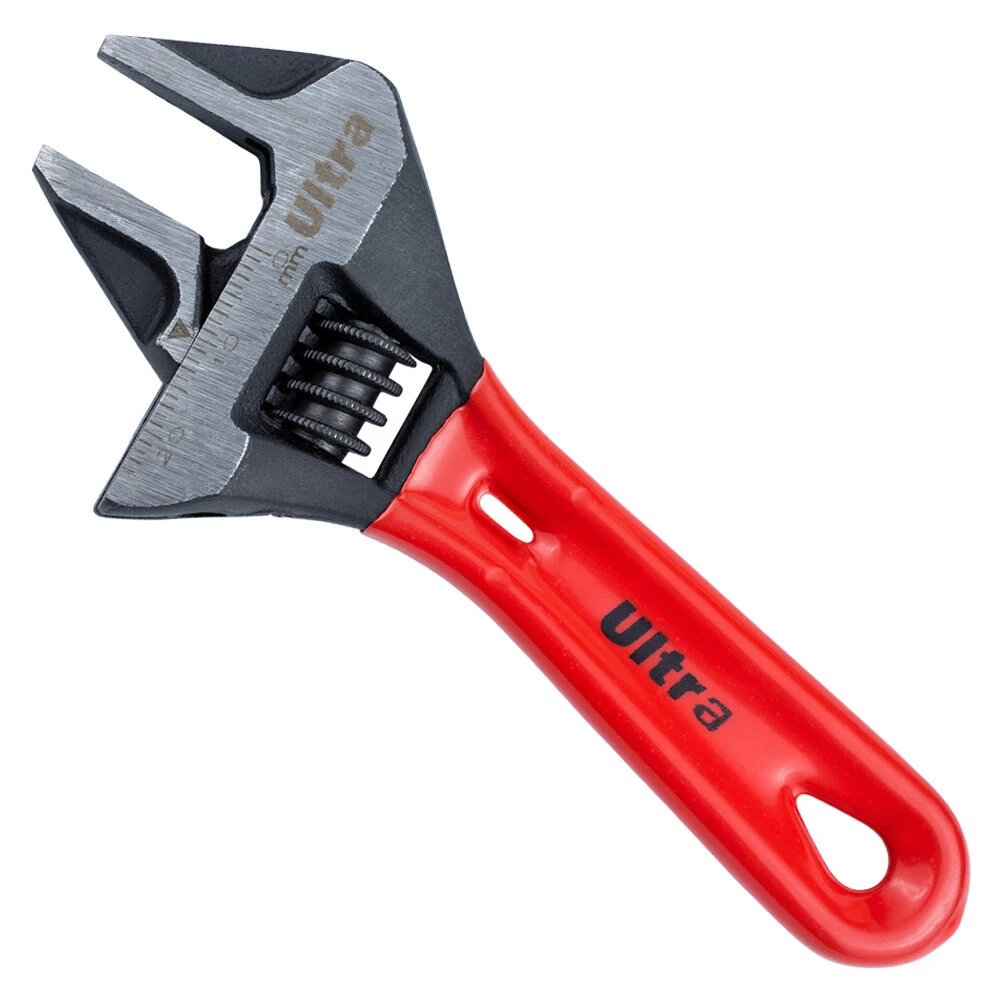Ключ розвідний з тонкими губами укорочений 120мм, 0-24мм CrV ULTRA (4100212) являє собою універсальний ручний інструмент, накидна частина якого може підлаштовуватися під розмір гайки. Його робоча частина оснащена рухливими губами, які розводяться на потрібну відстань за допомогою гвинтового механізму.