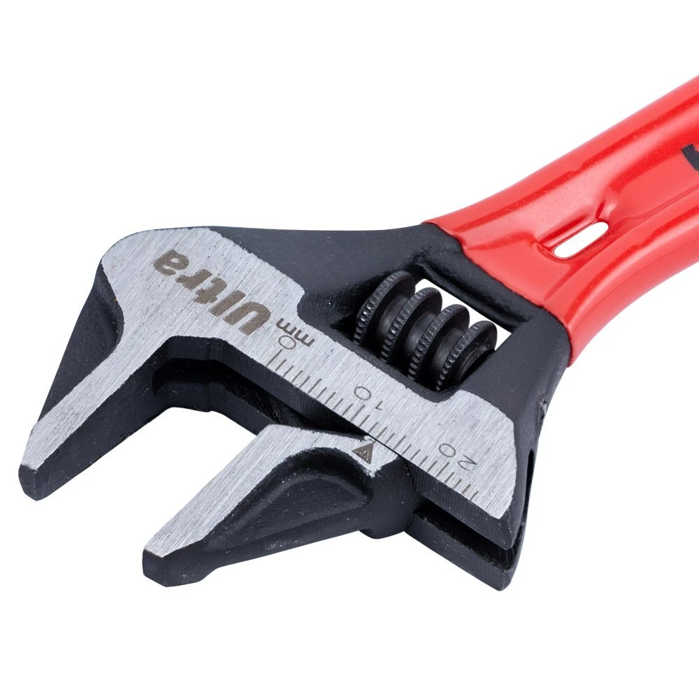Максимальна відстань, на яку можна розвести губки інструменту, на 50% більша, ніж у стандартного ключа. Для більш зручного використання на поверхню накидної частини ключа нанесена шкала з розподілом по 1 мм. Це дозволяє виставити точний розмір при роботі з тим чи іншим видом кріплення. Розвідний ключ виконаний з високоякісної хромованадієвої сталі.